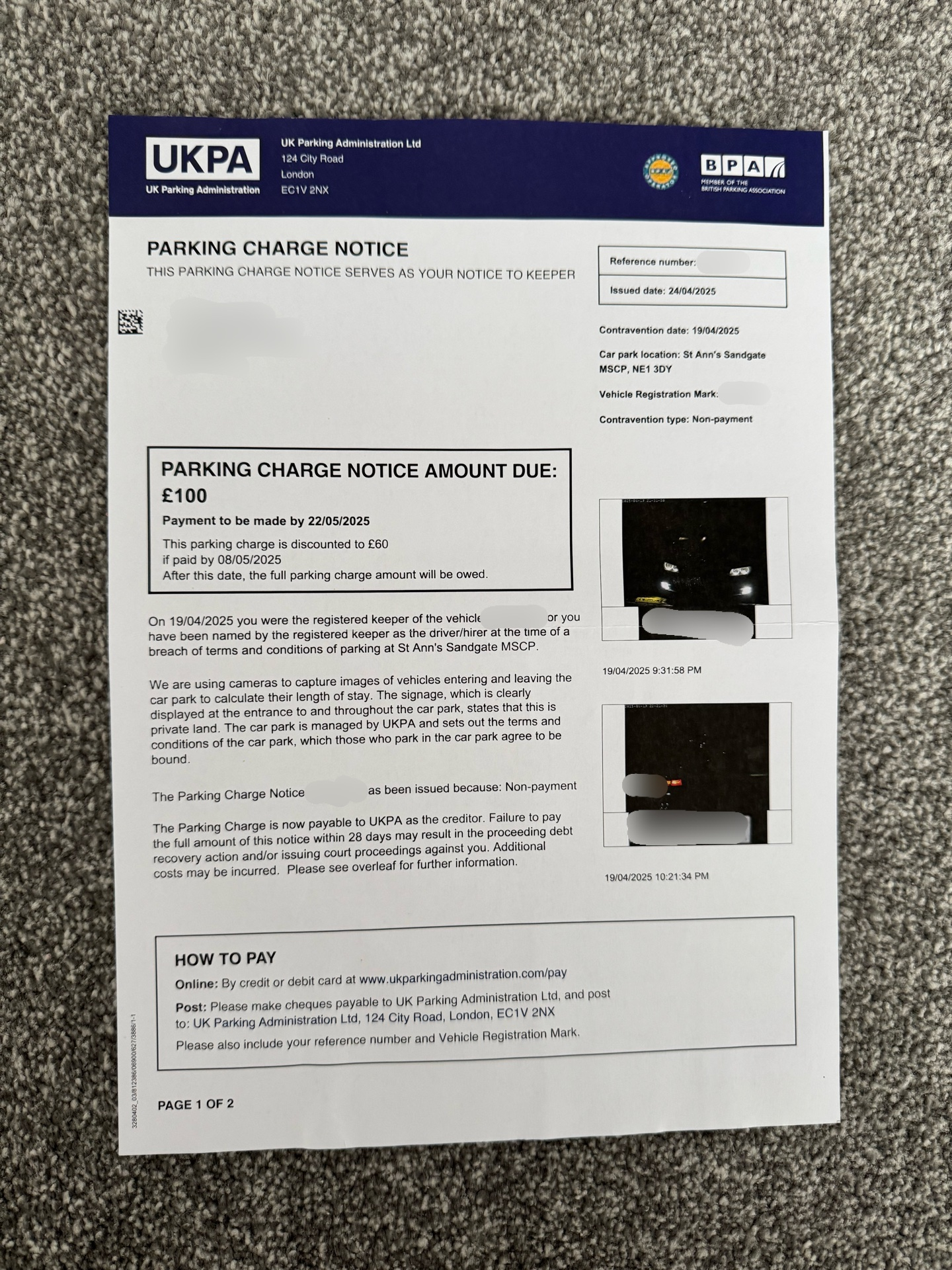 The letters said it was St Ann’s Sandgate MSCP, but I didn’t park in the multi-story building, I parked outside on the road. After I got the letters, I went there on foot and saw signs saying no parking at all.