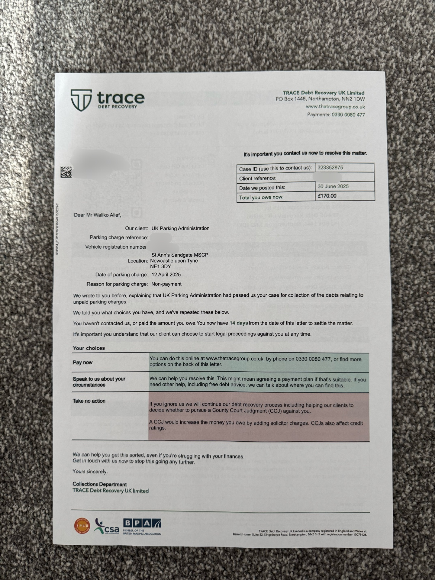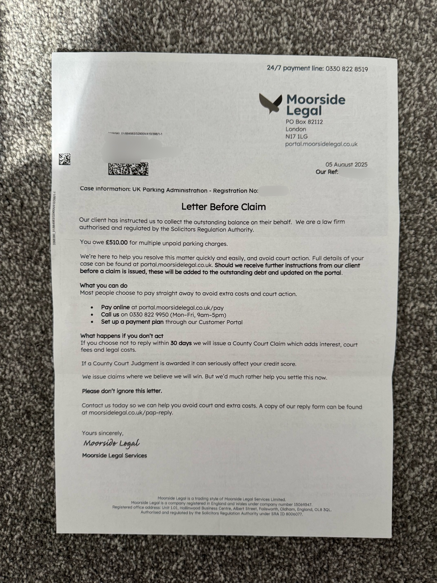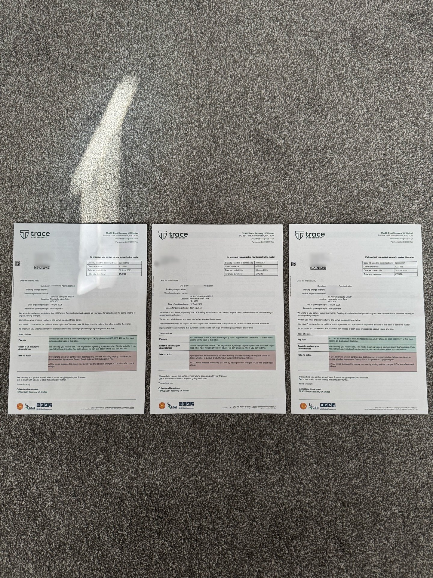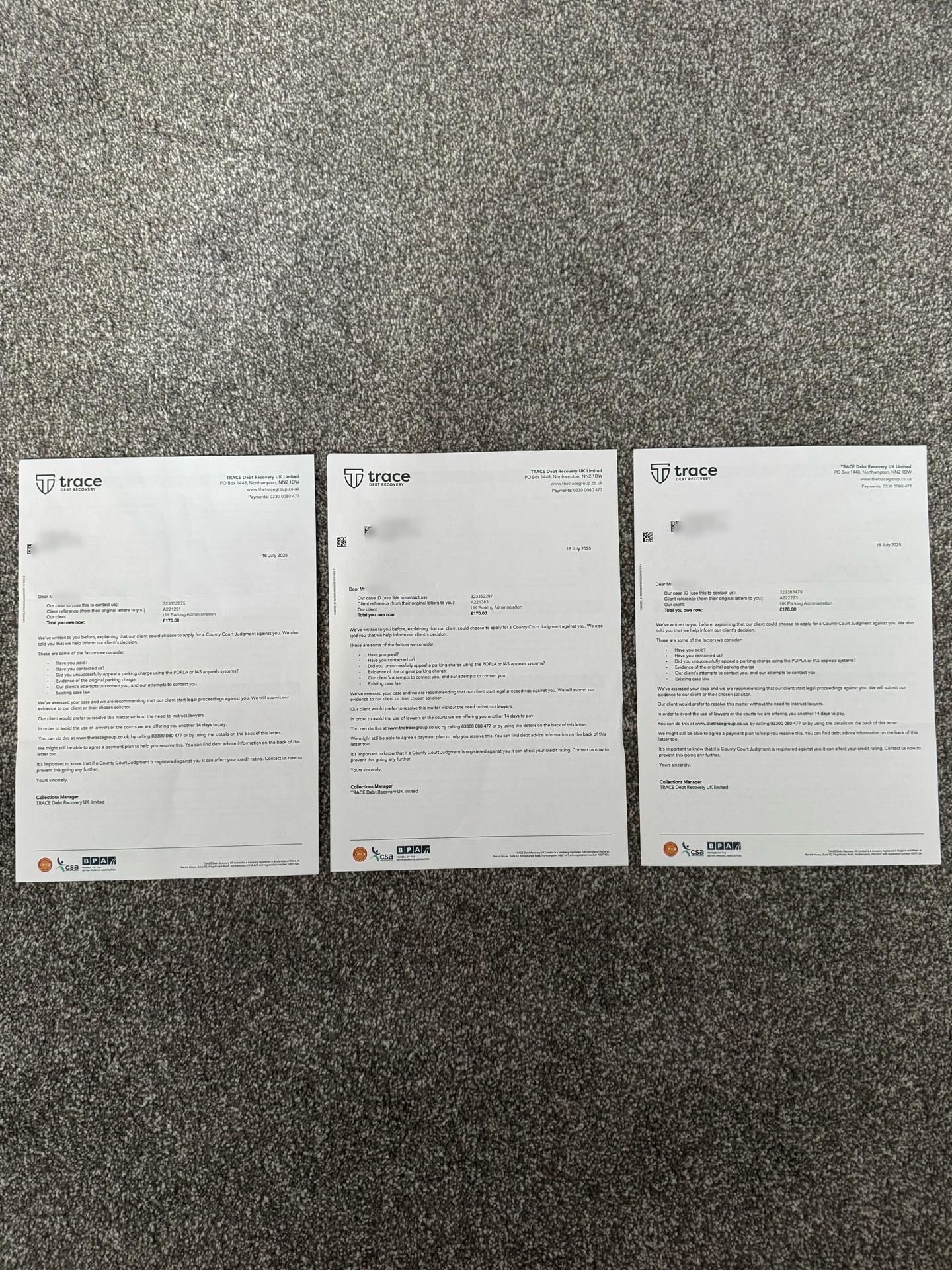 Then, after a while, they got passed on to Trace Debt Recovery, and then to Moorside Legal.