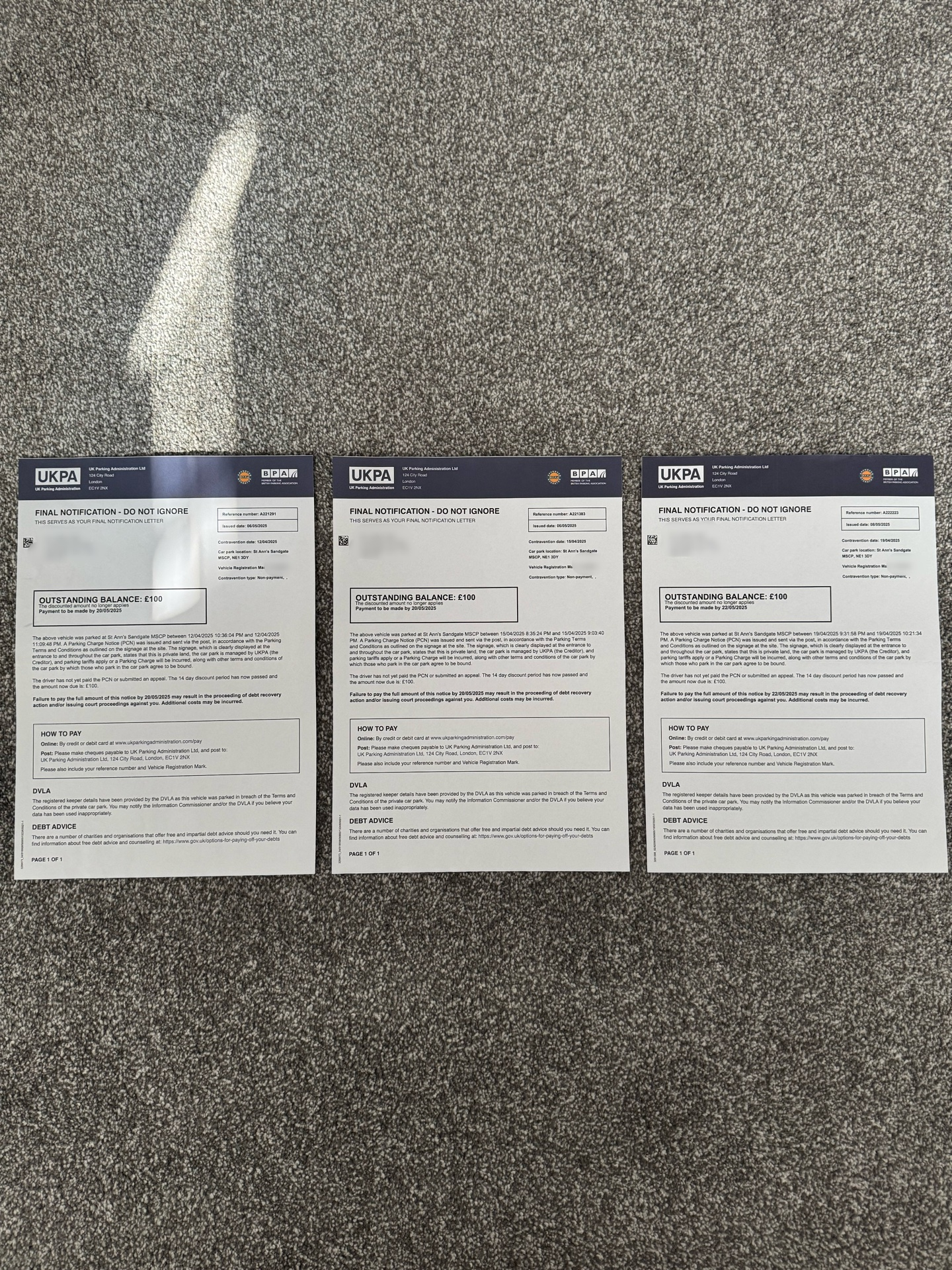 So, about a week later, I start getting these parking ticket letters with my registration plate pictures. I was totally shocked because I’d never seen this before, especially at that spot. I parked there three times, and I got three letters!