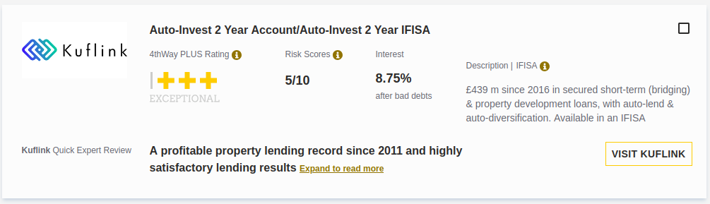 When the forecast is rain then they ask for the umbrella backThat's why the FCA has discouraged such practices from the point they took over regulation of P2P. One cannot insure away the risks of P2P, any more than one can insure away the risks of investing in general. The initial position of the FCA in ~2019 was that platforms should not expose themselves to a risk of failure by taking on the same risks as the consumers lending through them. Because P2P is very risky and, as each investor must agree, these are investment "where there is a significant risk of losing all the money I invest".As you say, these were really only schemes that would smooth returns during the good times, and they were not intended to insure away the systemic risks of the asset class, which are significant. Rather like a jacket that is described as "showerproof".That said, the unsecured connected party lending described in the 4thway link in JustJ12345's post, even if it is only 6% of the pool, is very concerning. The sort of stuff that got revealed early into the sagas of Lendy, FundingSecure, and dare I mention, Collateral. It seems Kuflink had its prestigious 4thWay PLUS "Exceptional" rating pulled: