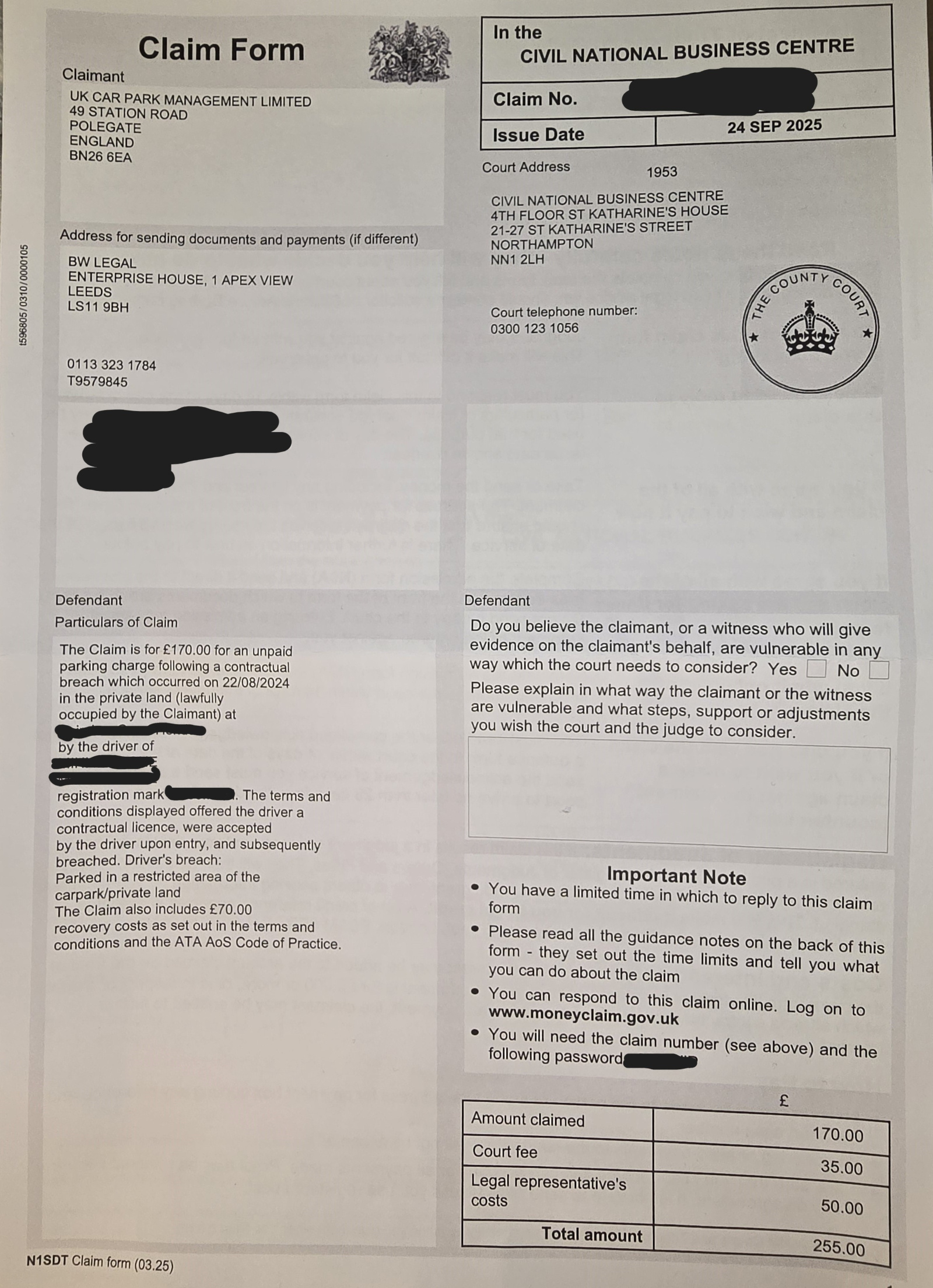 I have been sent a CCJ for a Contractual Breach on Private Land after more than a year. I did search for a couple of cases in the forum and this case i mention below is very similar but not exactly the same ,whereby i also do not remember a year ago receiving a fine on my car or postal fine or any debt collectors mail for it. I don't remember seeing a sign either.
