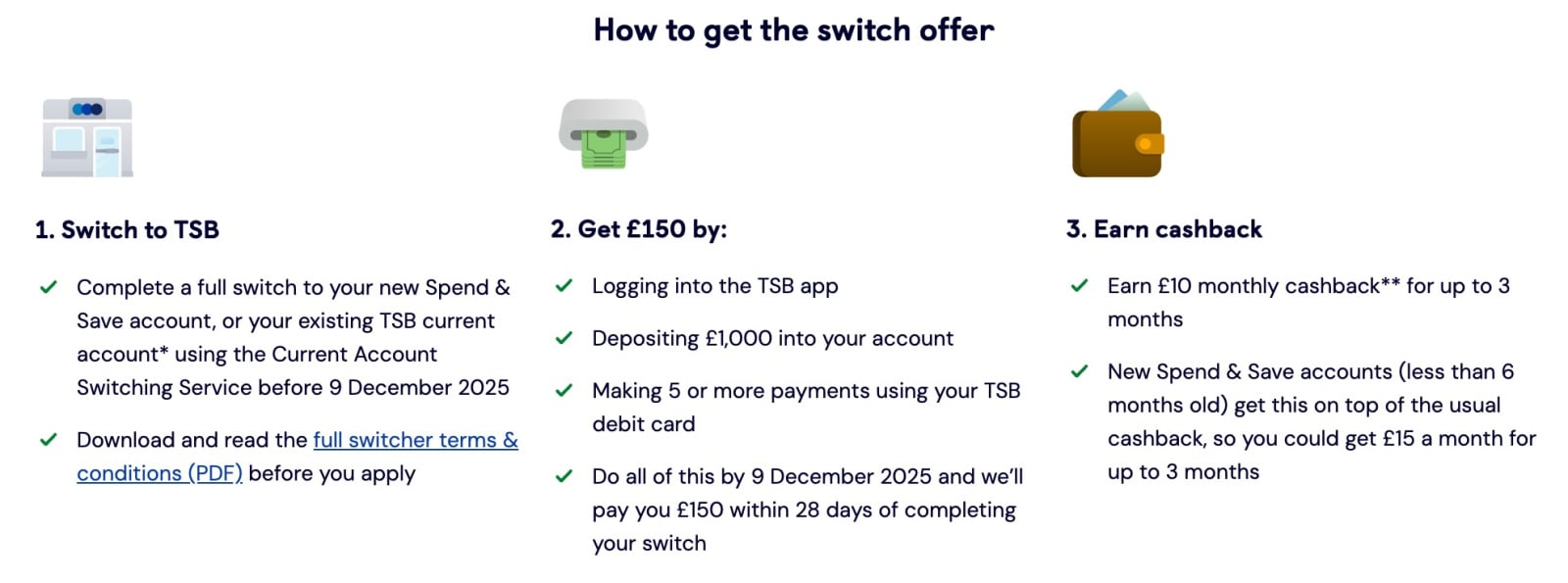 TSB £180 Switch and Stay offer (30/09/2025 to 09/12/2025)