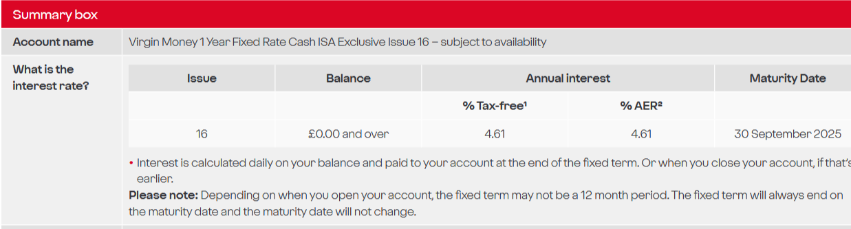 If you check the Virgin Money website the Fixed Rate ISA 16 maturity date is 30/09/2025.