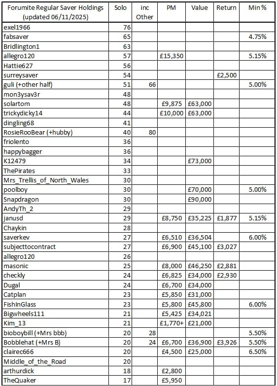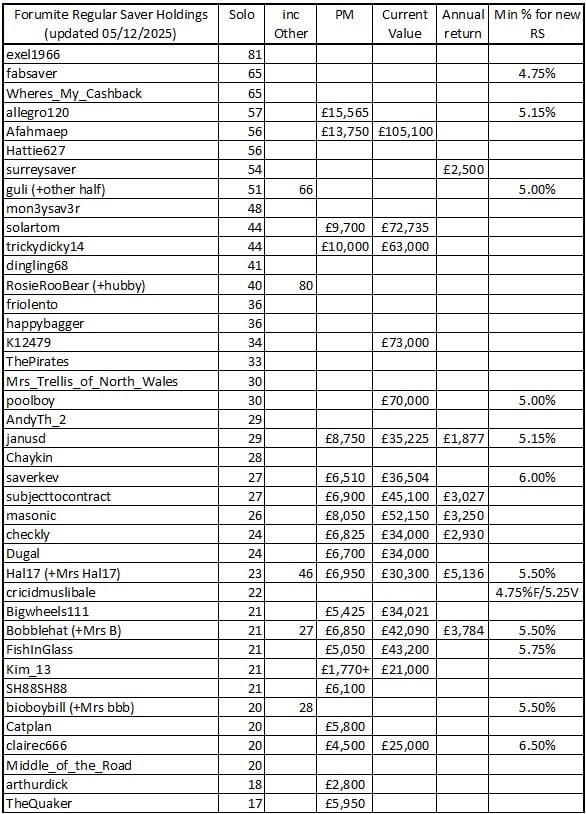 The number of reg savers varies regularly as some mature and new ones are added. Currently I have 23, they require almost £6000 a month to service and the total value is almost £40K.3