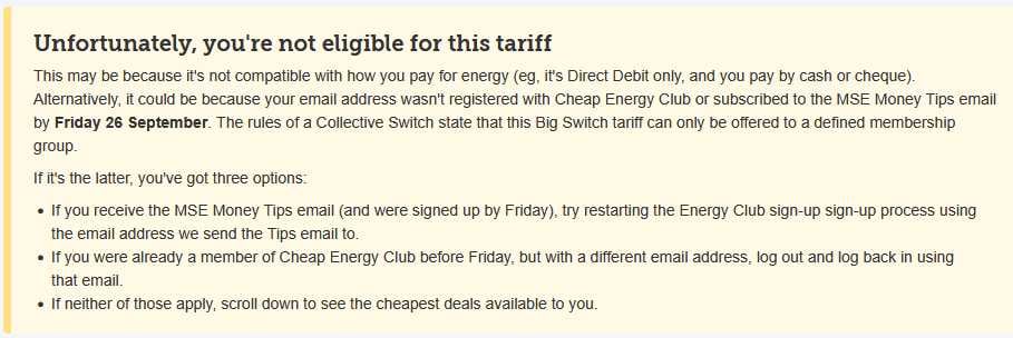 Cheap Energy Club tarrif not available - why