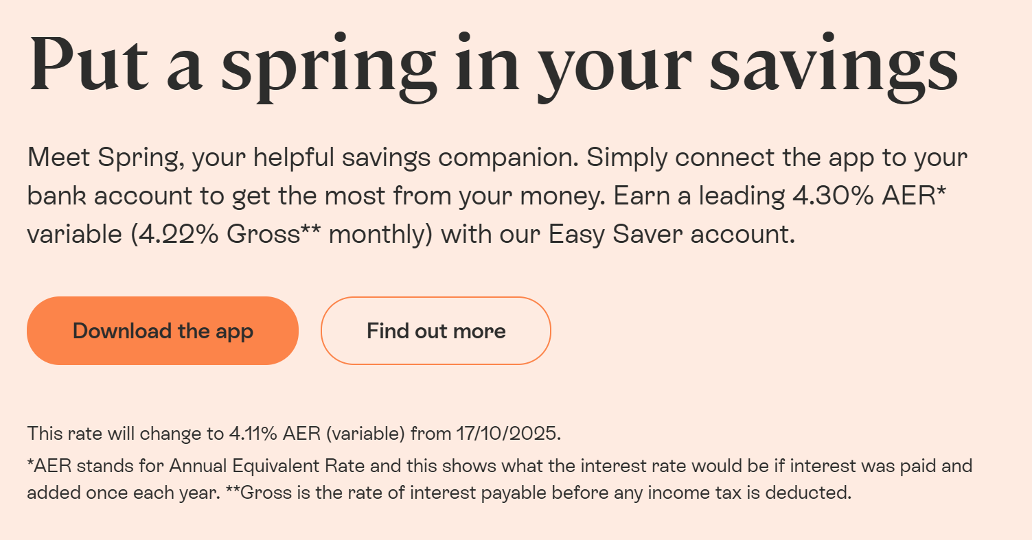 All Spring Easy Saver Account are paying 4.30% until 17th October (including newly opened ones)