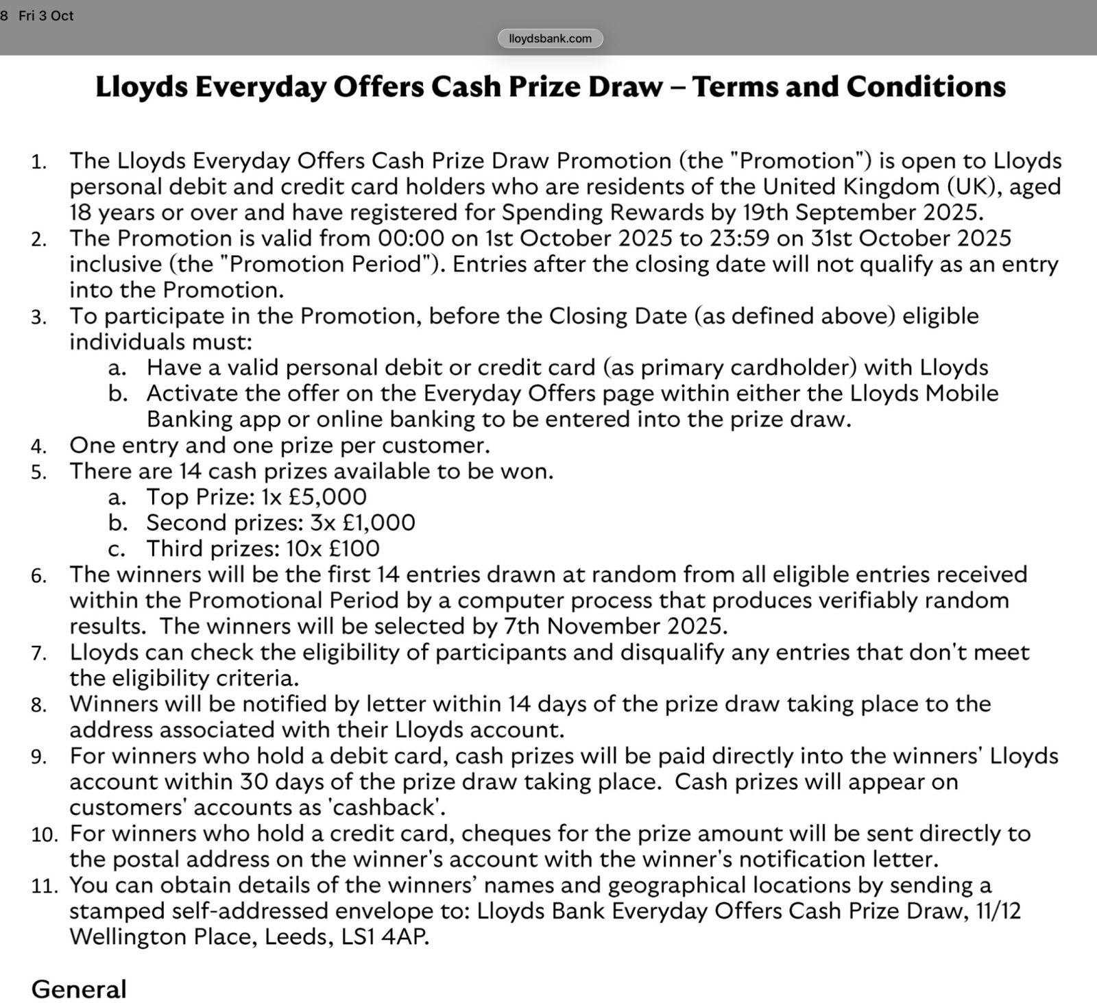 I've never used Lloyds "Everyday Offers" but a free draw's a free draw.