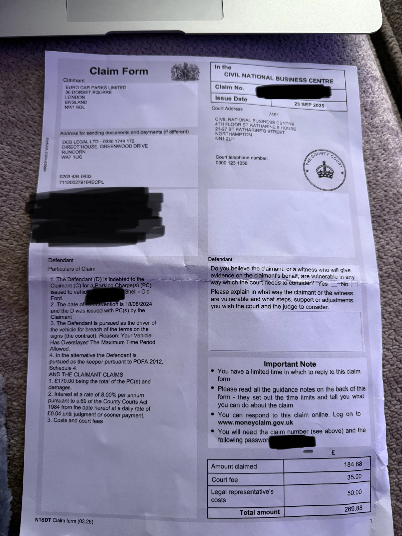 So a standard ECP DCB LEGAL single pcn claim for an alleged overstay , like dozens of other recent similar cases