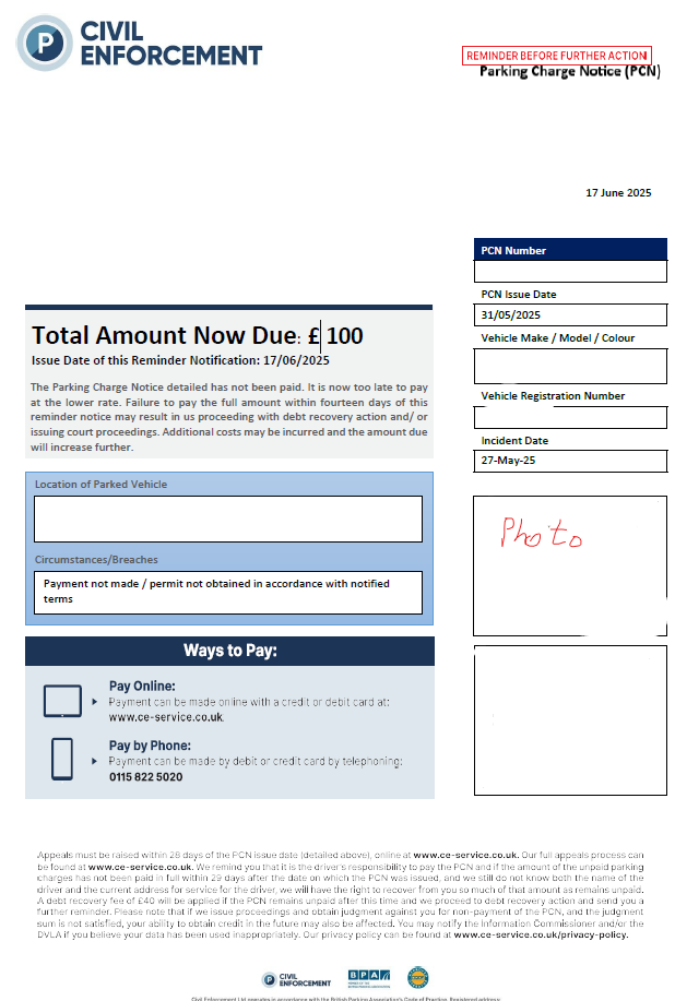 I was a genuine patient at a GP practice on May. I never received the original Notice to Keeper (NtK) or reminders. 2 Months later I first learned about the PCN from a DCBL debt letter traced to my current address.