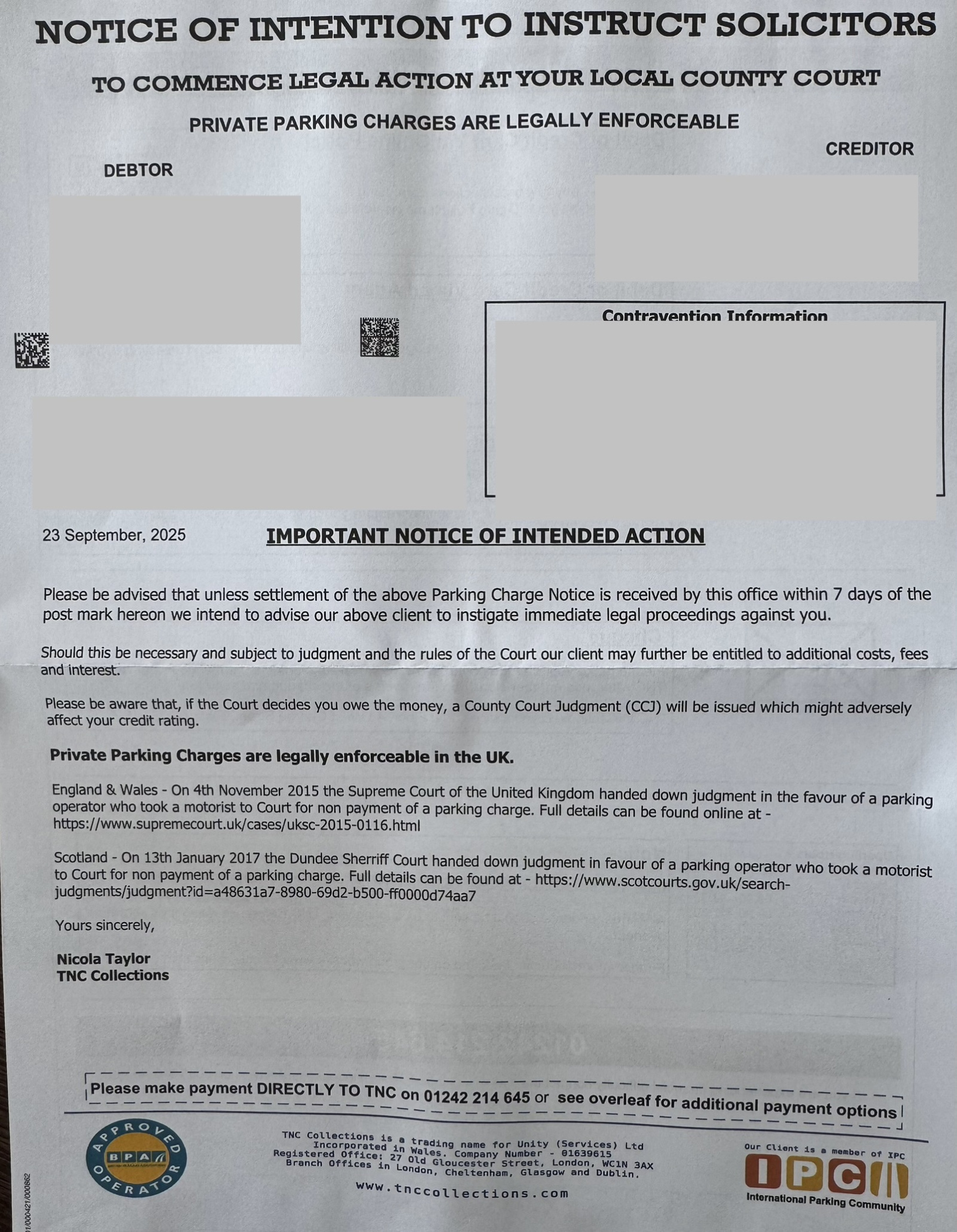 I appealed a private parking ticket with one of the templates on the forum. They have since rejected the appeal and now being chased with the attached.