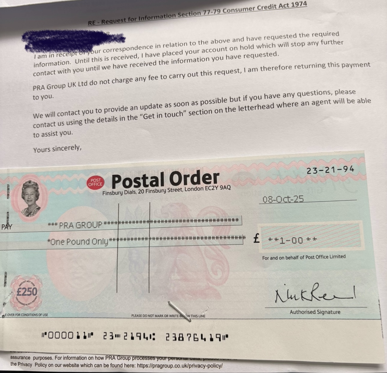 Update!I have received a letter as below from PRA - this is the one I’m most hopeful about as it has my 20 year old barclaycard and still owe £5K