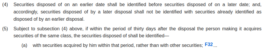 3. The priority order for which acquisitions should be used first is: same day; then all acquisitions within 30 days. My question is, does the priority decrease the further ahead the shares are purchased? So, for example, if shares were bought four days after the disposal and another batch six days afterwards, would the first batch bought closer to the disposal be processed first before that bought later? (My gut: those closer are processed first...)