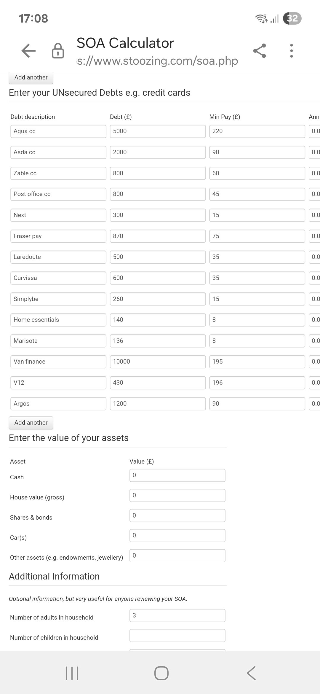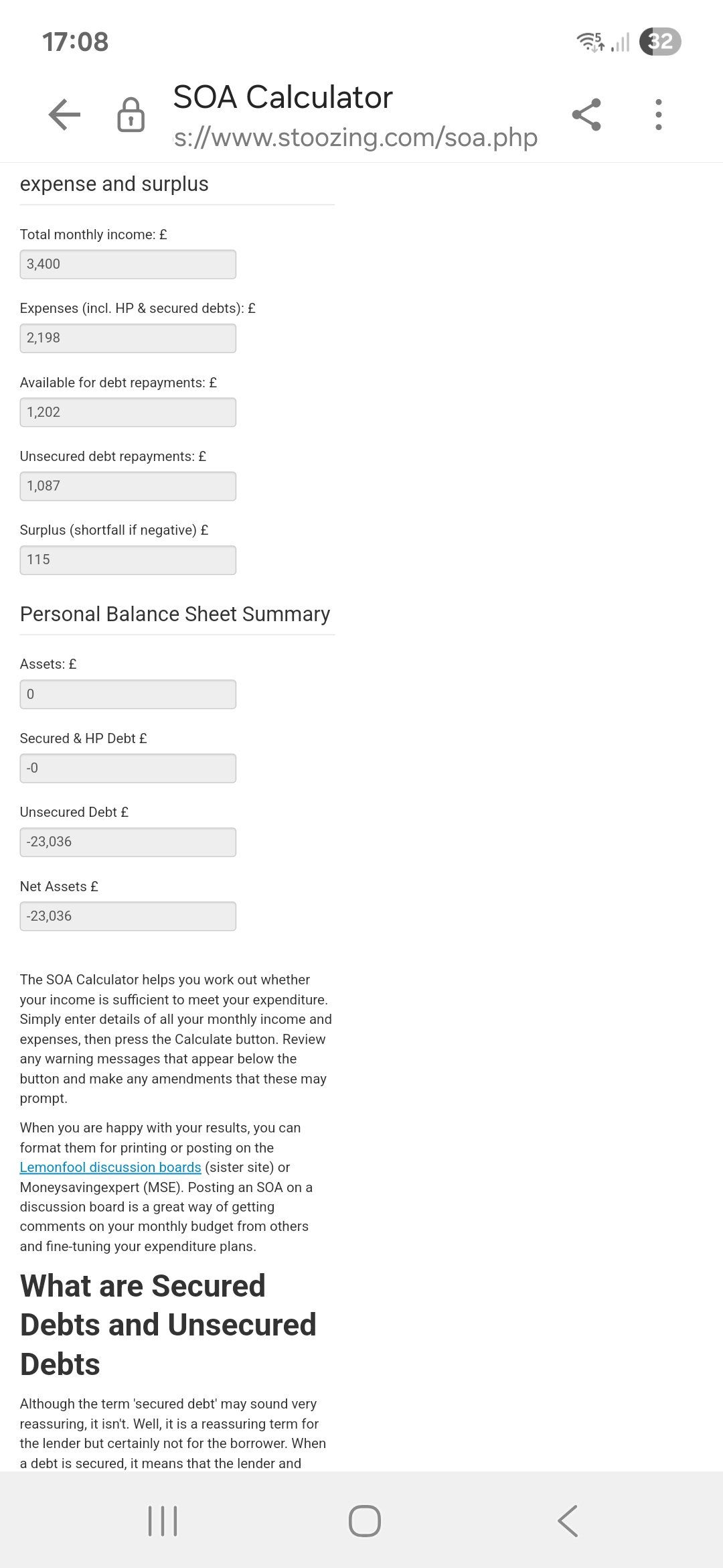 Sorry we need to see all the details. That summary says you have enough to pay your expenses and the debts and have £386 to spare, I am guessing that isnt right!0