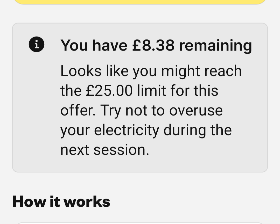 I'm on £16ish already so it's definitely not capped at £5 per session. They're letting me know I'm getting near the cap. I'm not overusing anything, it's all been normal. The car doesn't usually need charging every week usually though. And they're paying me the variable rate while I'm on a cheap fix.