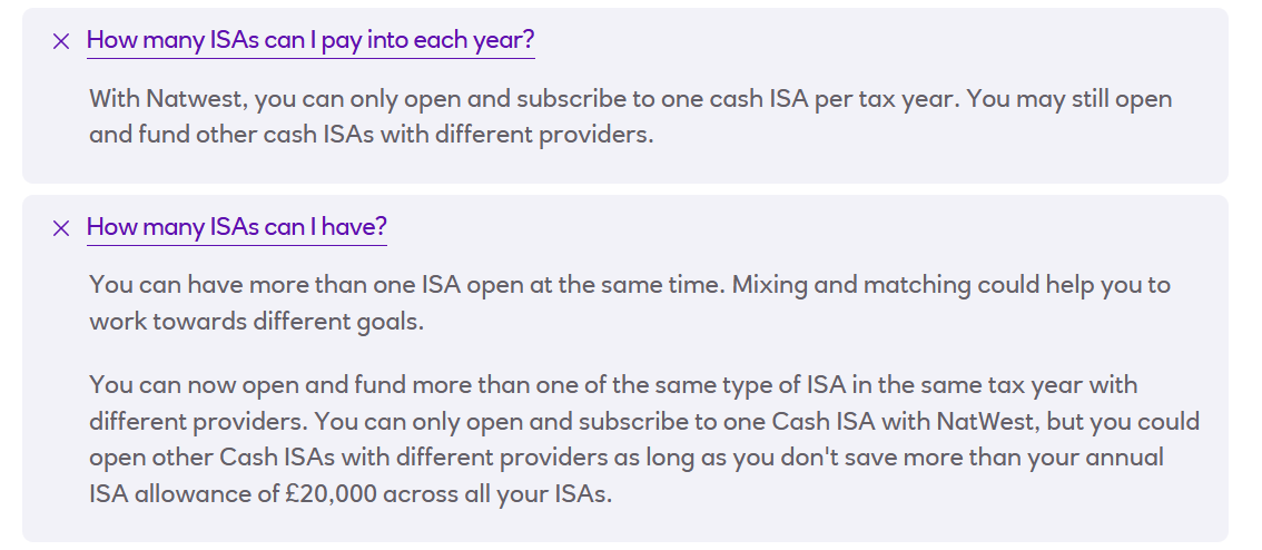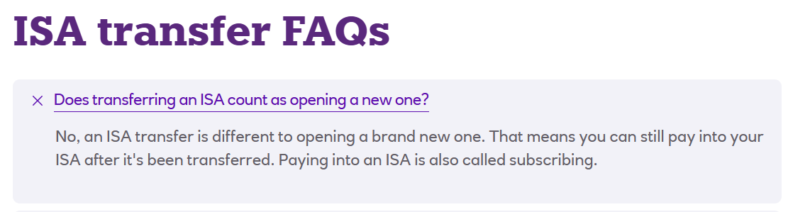 Oldhand_2 said:I had a two-year fixed rate cash ISA with Natwest which matured in July this year. At maturity it converted into a low rate easy access ISA. I then opened a new Natwest fixed rate cash ISA and transferred the full balance from the easy access ISA to it. I didn't add any cash (my 2025/6 ISA allowance is elsewhere).