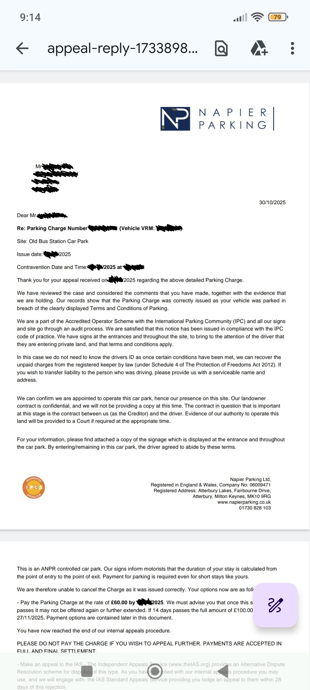 Need help with how to proceed with appealing Napier Parking Parking Charge letter
