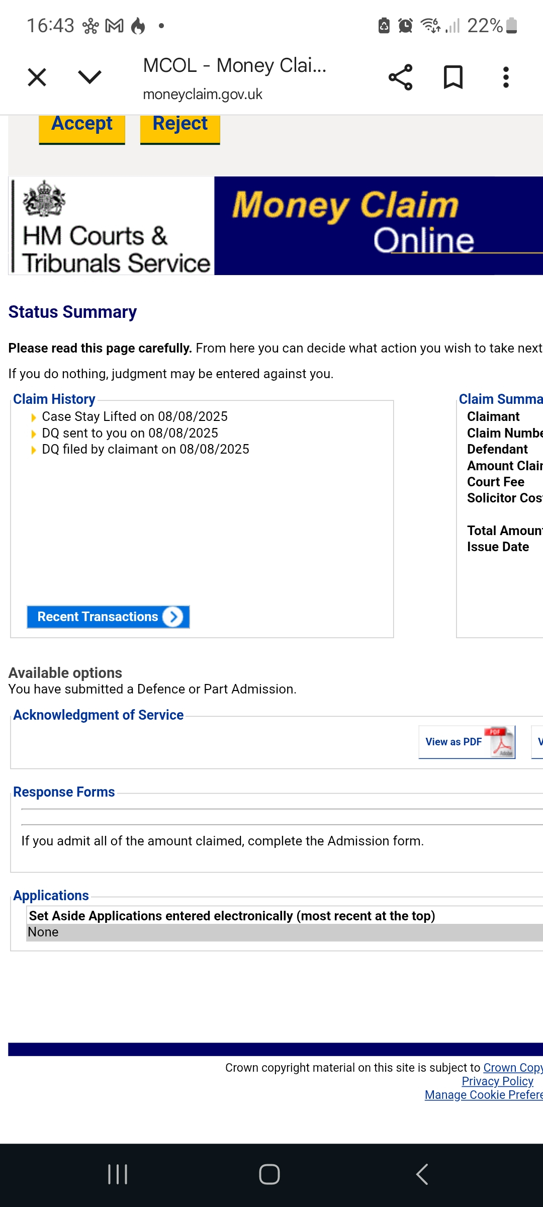 Money claims online not updates