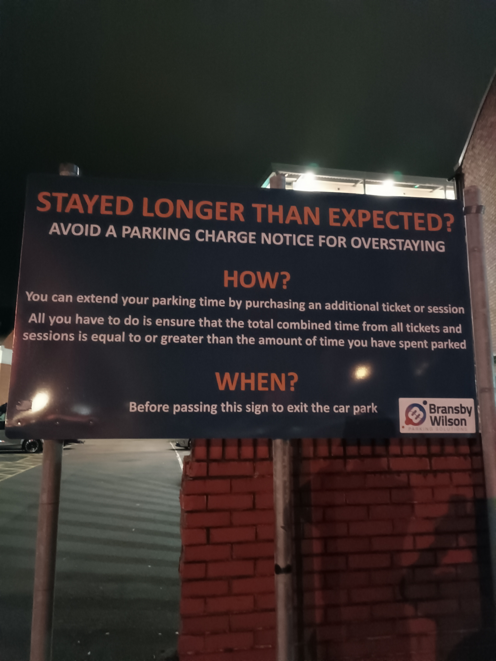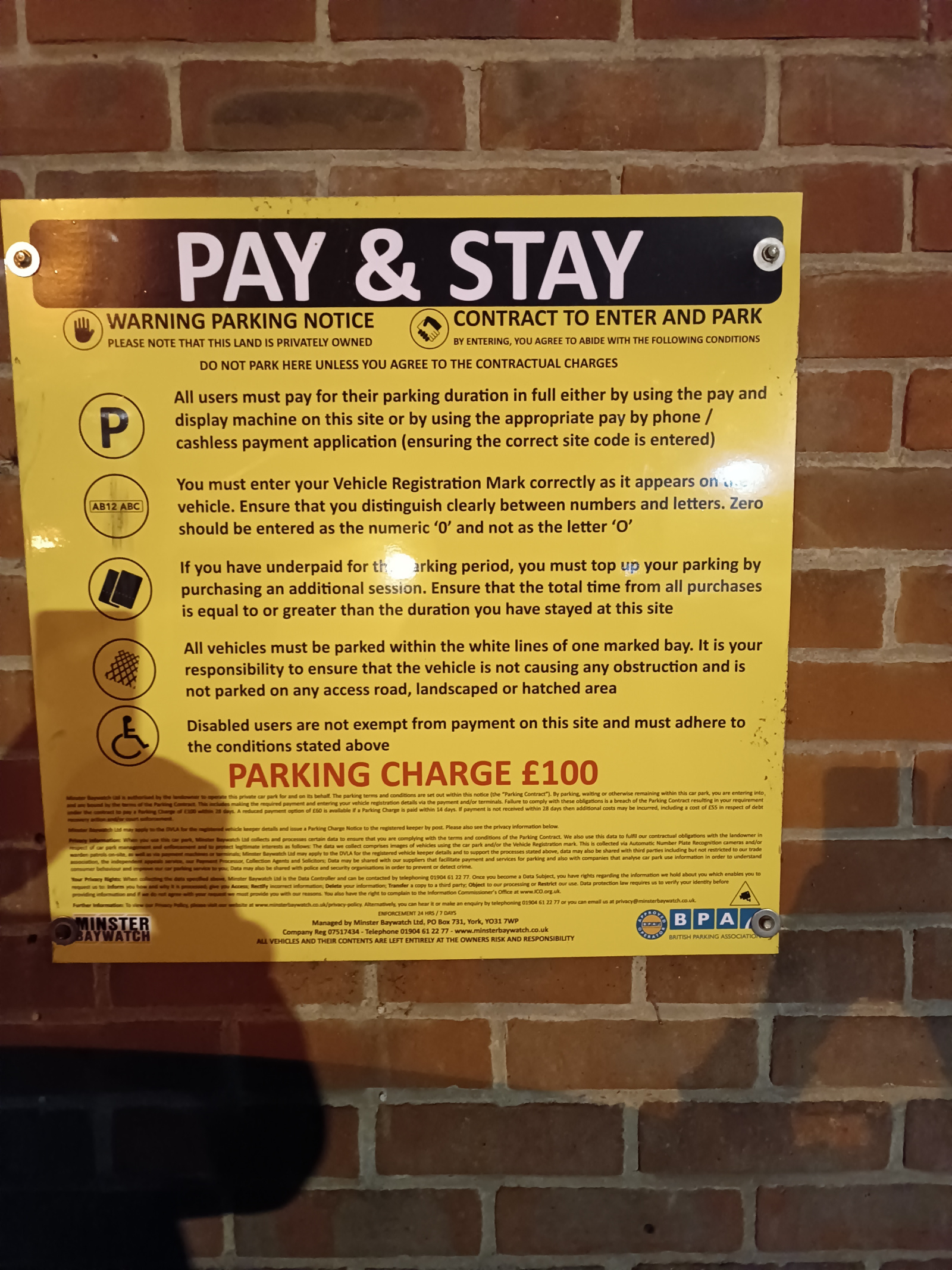 It didn't print any tickets which I thought was strange but then seen a sign for "Pay and Stay" which I thought ok it's not "Pay and Display" so must work on the reg I put in, which I now know looking back this was a mistake.