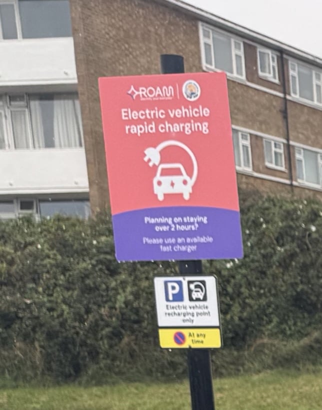 The main sign on the carpark didn't mention anything about EV charging specifically
