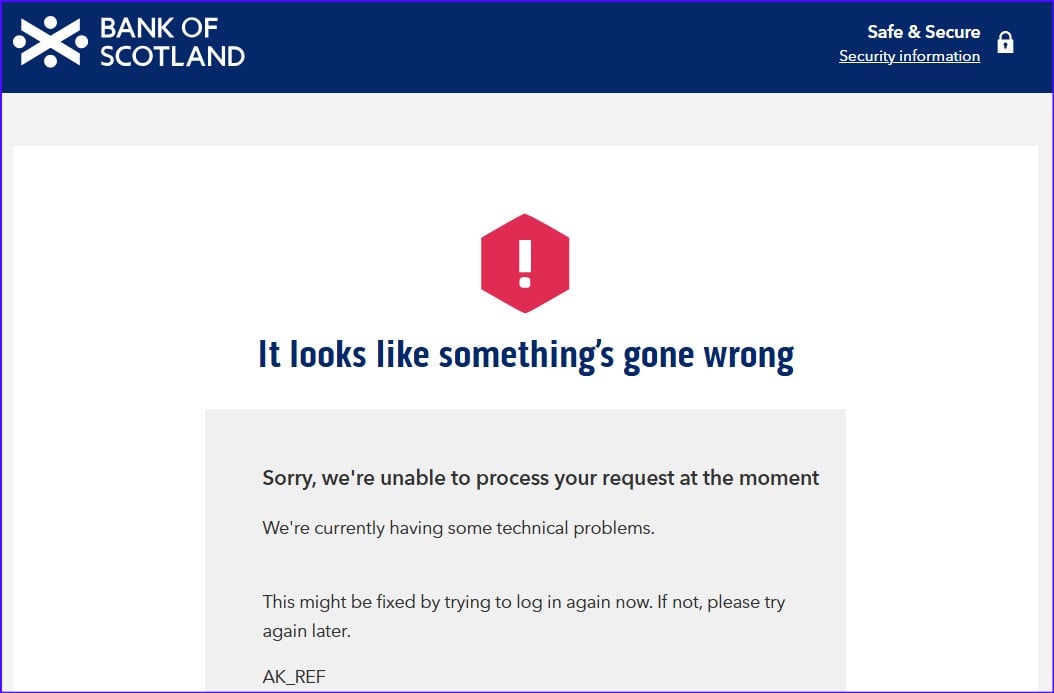 Thanks for the information. Tried logging into Bank of Scotland Business Internet Banking this morning to be greeted with this message (same with their app). It's affecting all of Lloyds Banking Group, apparently.