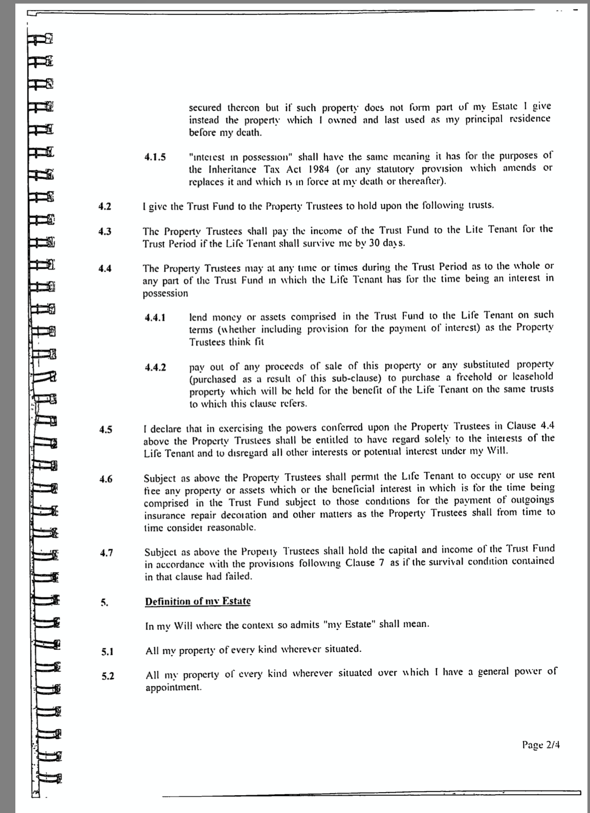 OK, the will appears to be a classic well drafted IPDI trust with the usual bells and whistles from clauses 4.3 to 4.6, one would expect to see.