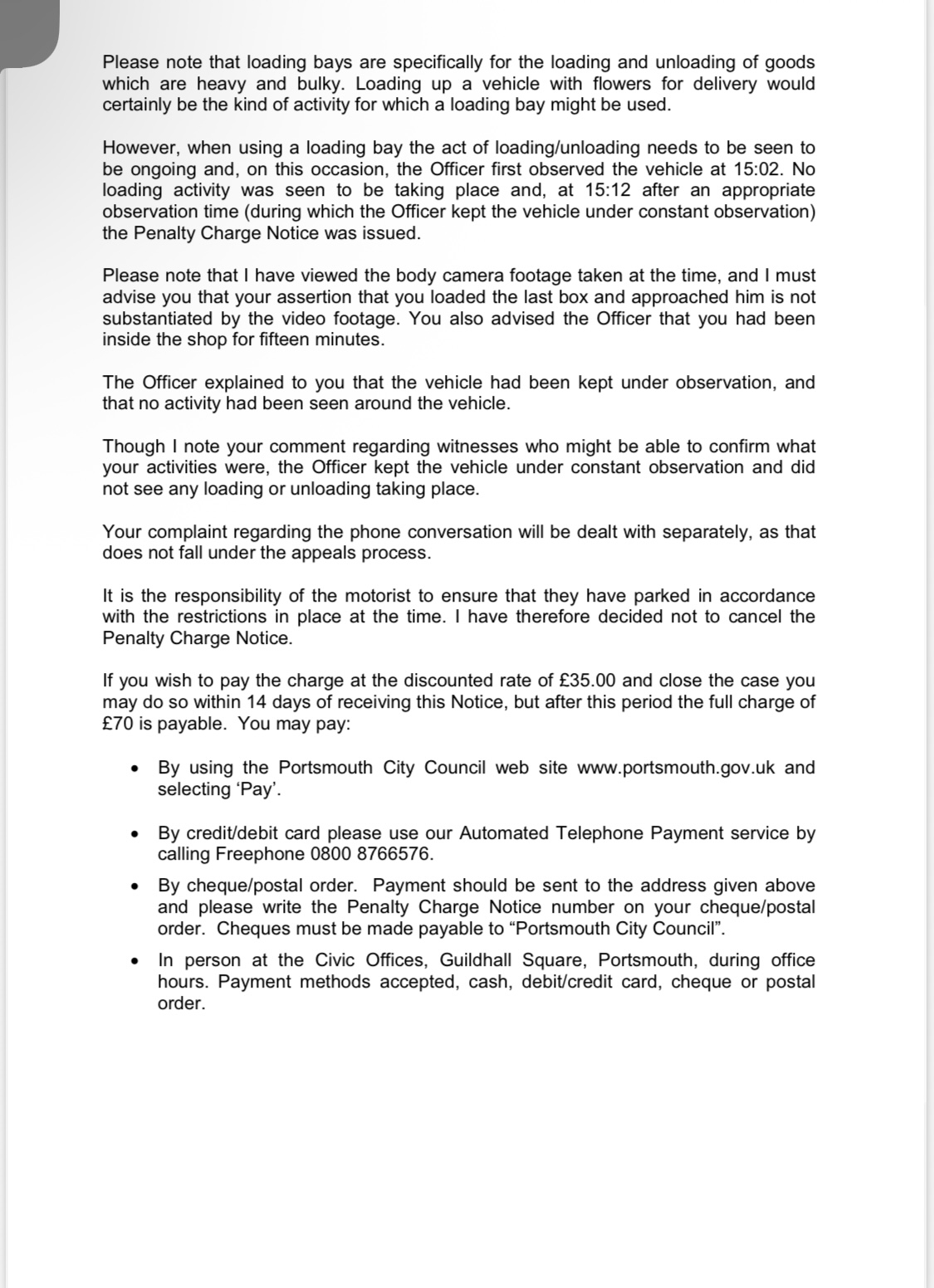 I rang them first and woman on the phone (very rude) checked wardens GPS and confirmed he wasn’t standing next to the car but walked away, saying it was okay for him to walk down the road. In the letter they say ‘constant observation’, which wasn’t a case as I was making trips.