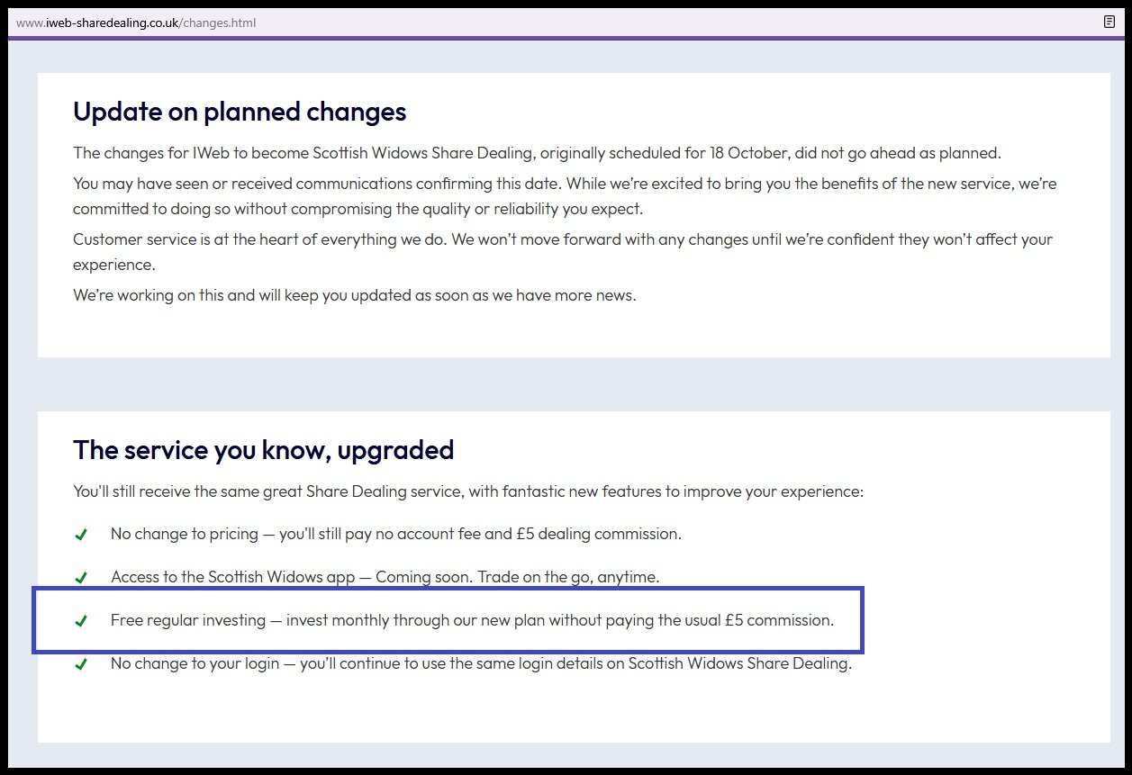 @Booker_jfree monthly investing is coming to iweb in the very near future, once the have amalgamated with Scottish Widows. This was meant to have happened on Oct 18 but there's been a delay