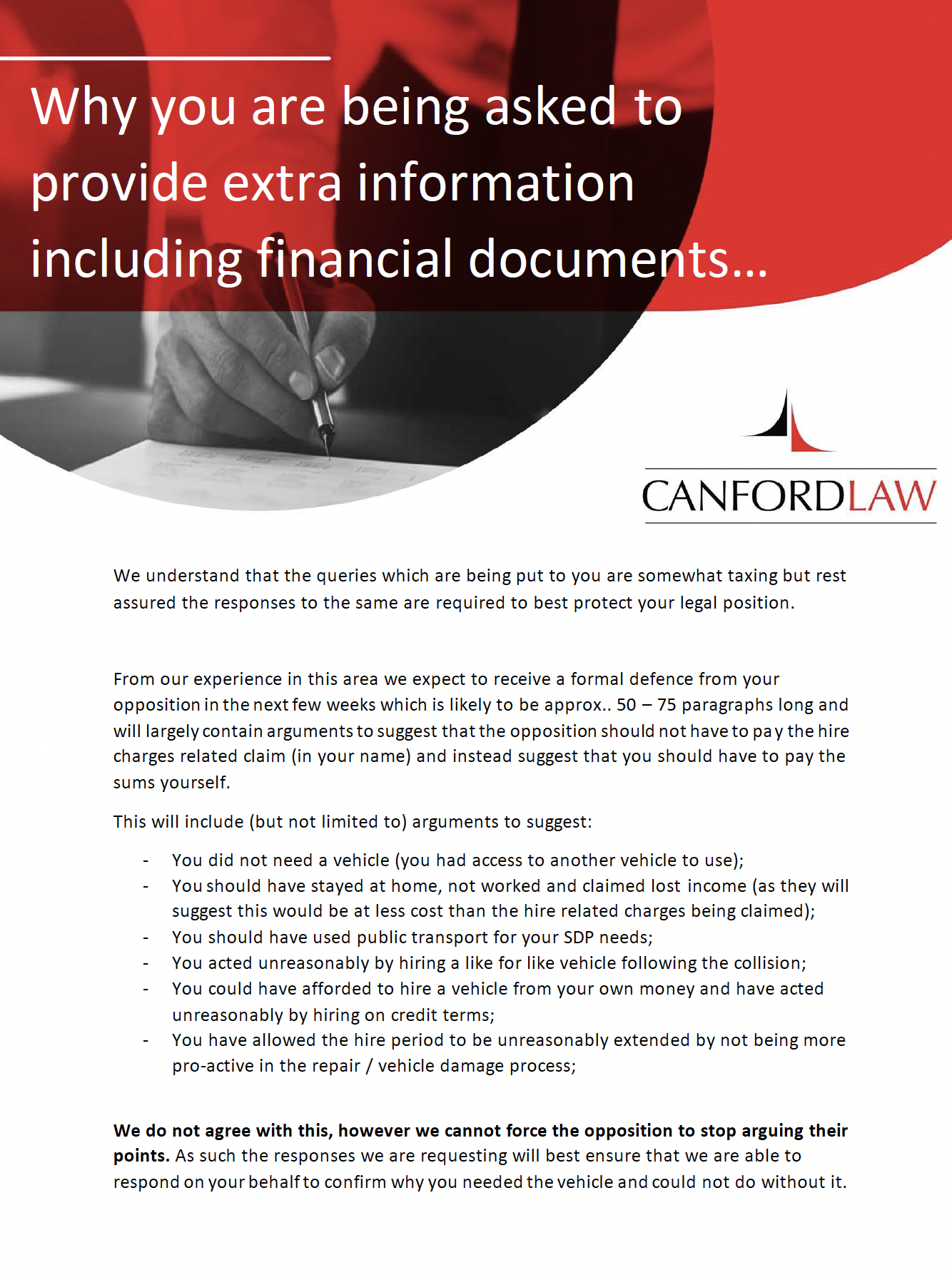The most common query we receive in relation to matters such as this are those surrounding your financial details at the time of the incident. We understand that finances are a personal matter and would not enquire unless it was directly relevant to resolving the case. The reason this is asked is in relation to a component of Credit Hire law known as Impecuniosity. Impecuniosity is an argument that is put forward by the TPI in an effort to work out the most reasonable price ERAC are entitled to recover.