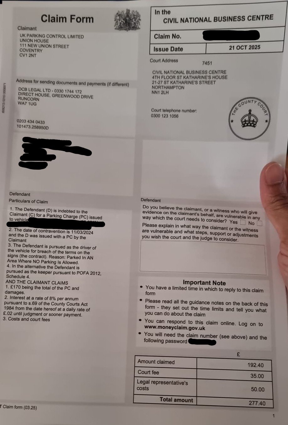 I will ask about it. But from what I remember being told, the keys were not in anyones possession so the car wouldn't have been moved.Le_Kirk said:With an issue date of 21/10/25 and providing you complete(d) the AoS after 26/10/25 and before 09/11/25 your defence deadline date is 4.00 p.m. on 24/11/25