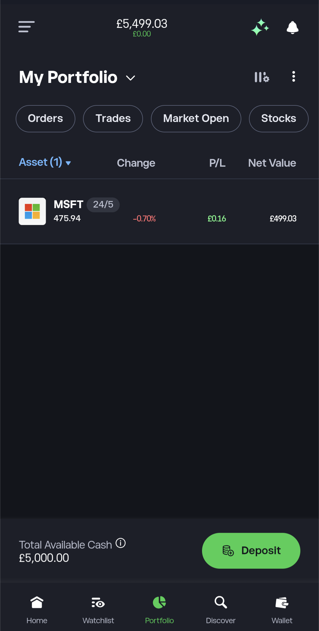 Did this yesterday evening. Seeing the same thing. Will see if it rights itself on Monday before I start compliant that I didn't actually want to buy £500 of Microsoft shares with my own money.tg99 said:Has anyone else made their £5k deposit today? Dad did and since the market is closed (Inc etoro’s extended hours trading) then rather than the free share being credited there is a pending order for £500 Microsoft. I assume this will thus execute on Monday and the free share will come into his account. However, his available cash is now £4500 so looks like they have ringfenced £500 of his £5k for the order. I assume that eToro will use their own funds to buy the share on Monday and the available cash will revert back to £5k post trade execution.