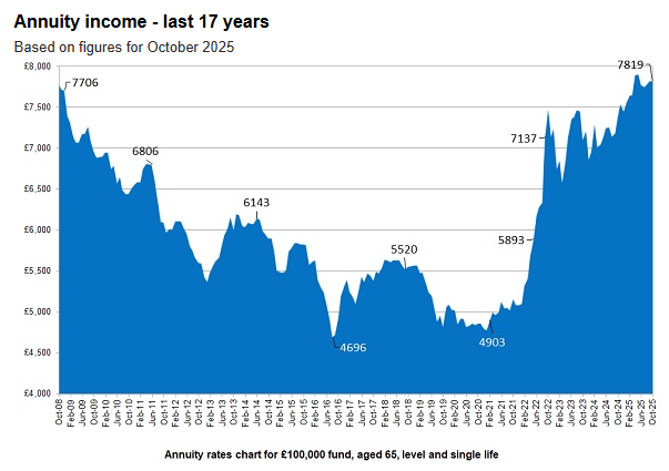 Over those same five years, however, annuity rates have doubled.Oranda said:I lost around 30% of my pension pot 5 years before my retirement.Look at this post, for example:In 2021, £100k would have bought a 65-year-old an RPI-linked annuity of £2685 a year.Take that £100k and knock off 46% (the loss in your gilt fund over 5 years). You've now got £54k.In 2025, £54k will buy a 65-year-old an RPI-linked annuity of £2918 a year.So the gilt fund as done what it was designed to do; it's preserved the value of the annuity you'll be able to buy with your pension.