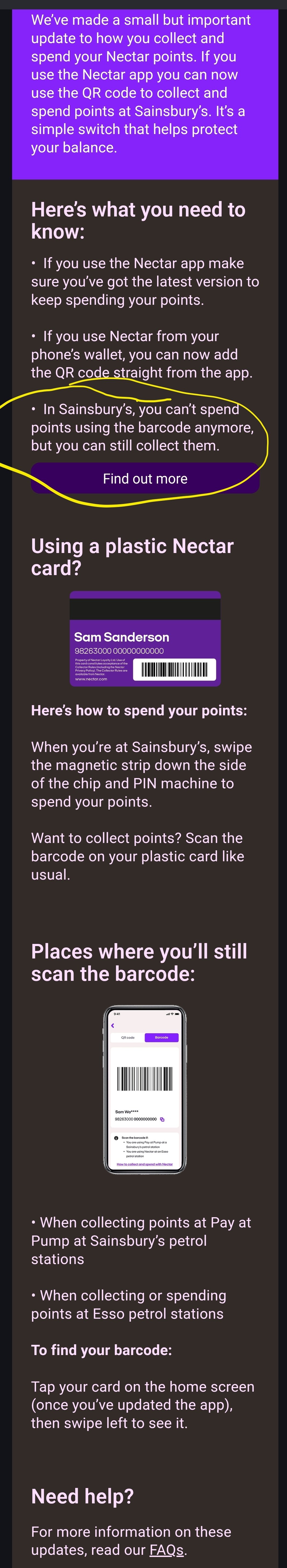 Did you try it? I thought the fob had a mag stripe, sure I've swiped it to release self-scan guns in Sainsburys.same here - as per usual, I only had my Nectar key fob on me at the self service checkout, which apparently doesn't work for spending...
