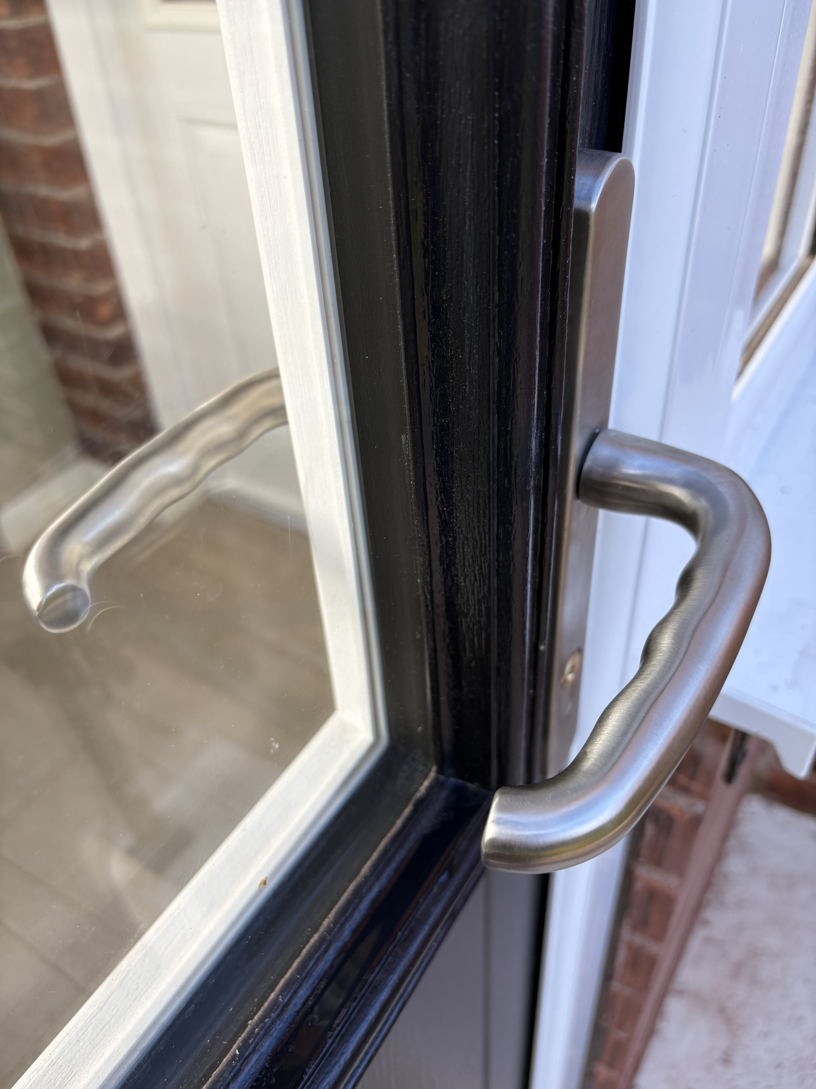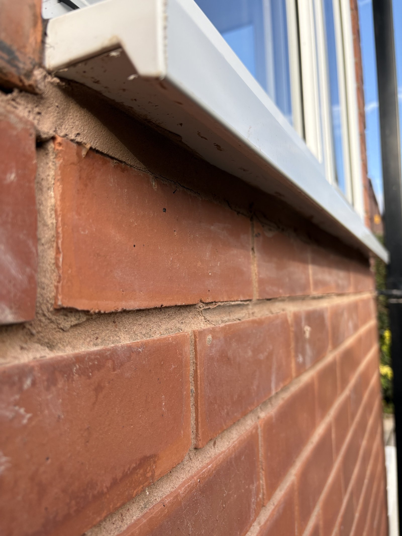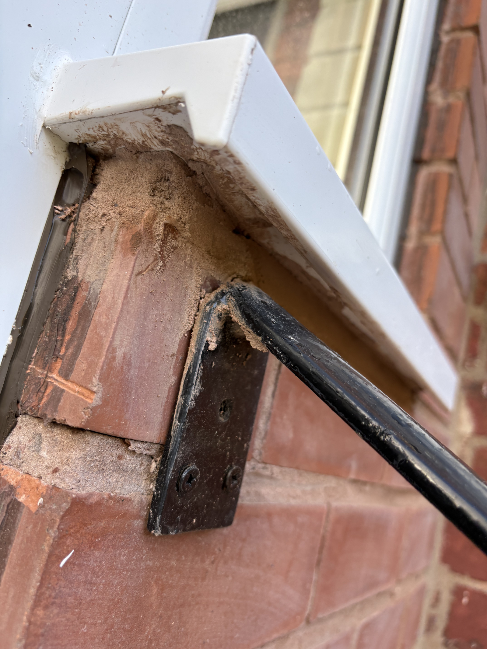 Ok so he’s been back - put mortar underneath windowsills, replaced handles (which actually match!) and put a trim above the door. I’ll neaten up the mortar at a later point but better than before
