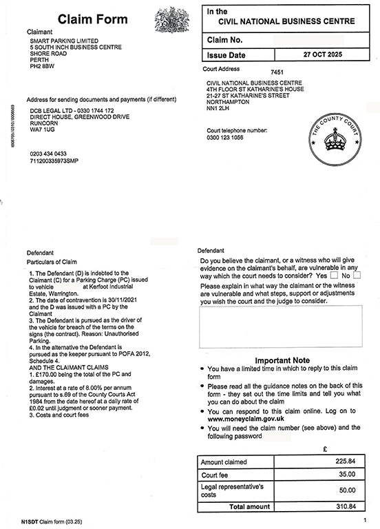DCBL/Smart Parking Limited County Court Claim - Defence help please