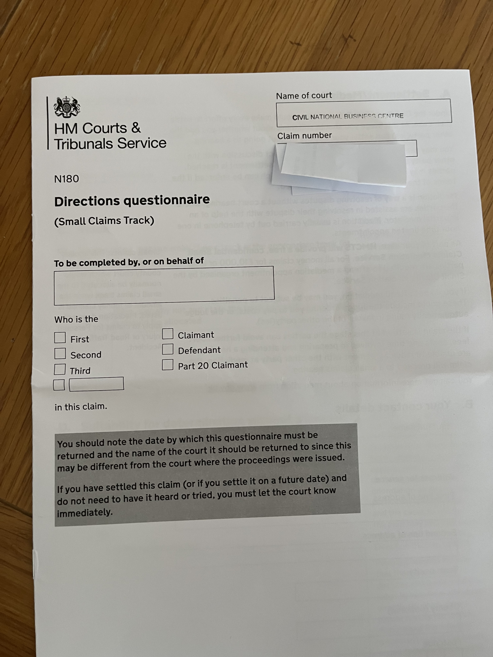 Court Claim form received - how to respond?