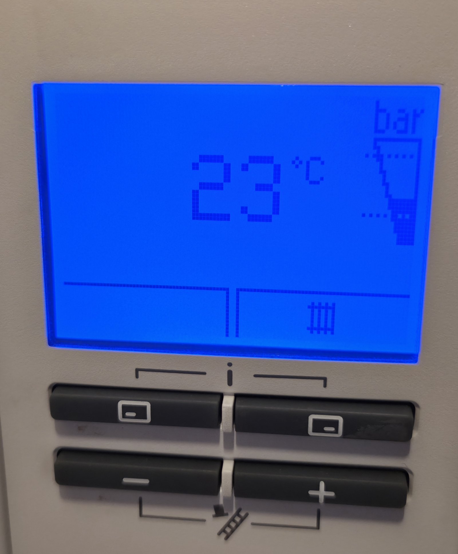 Just for reference, this is a photo of my display showing the pressure on the right (1.4), I haven't go the heating or hot water on right now so there's nothing on the left