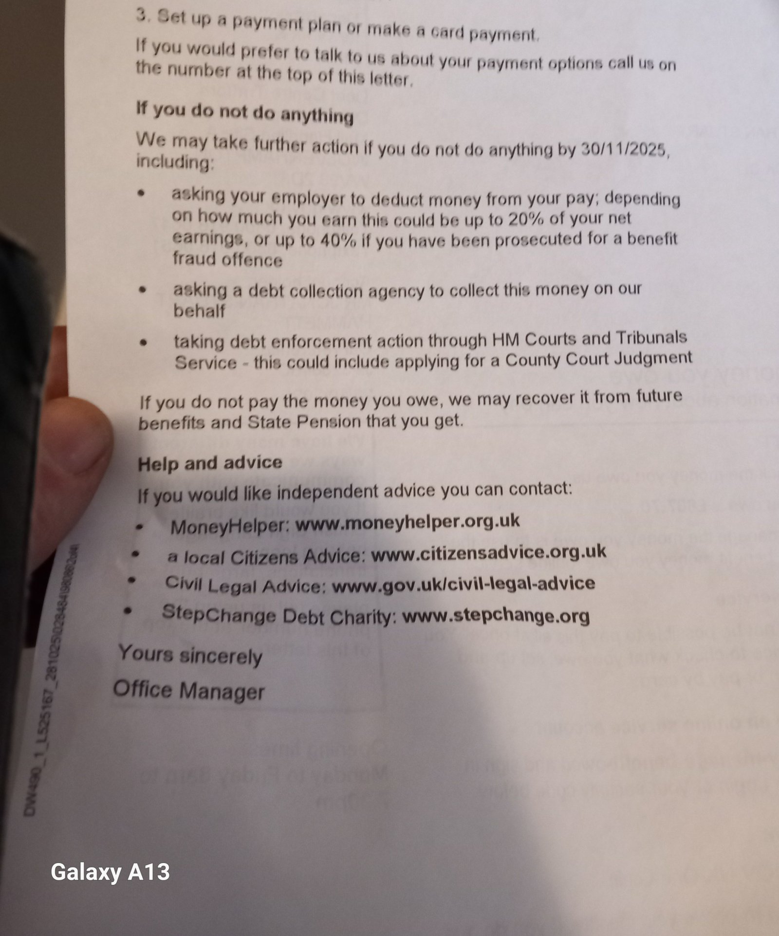 If you ignore it they may reduce your benefits or even take it from your wage, so dont ignore it. Call the legit helpline, fine out what has caused the overpayment and then either complain or pay it.