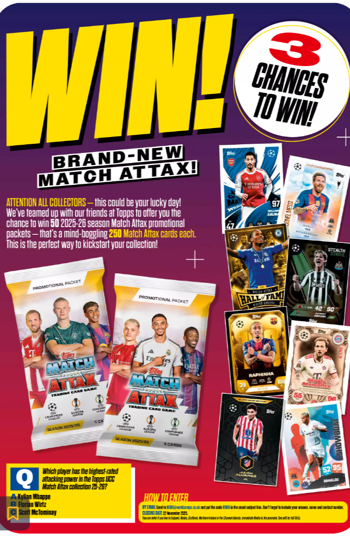 E: 22/11 HELP PLEASE Win 50 25-26 season Match Attax packets - Match of the Day Issue 738 (Email)
