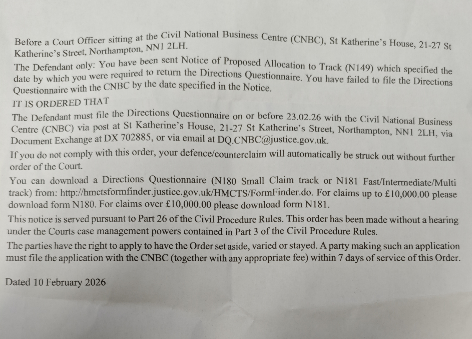 This is the letter that I received today. Does it mean that CCJ has been issued or do I have until 23/02/26 to file N180 form?