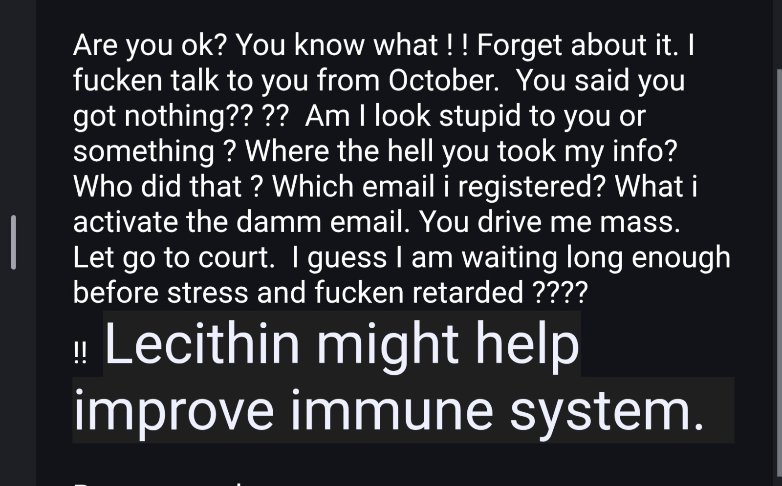 Who on earth is that message from? It's certainly not from a genuine Customer Service rep.Please don't tell me that was your reply to them