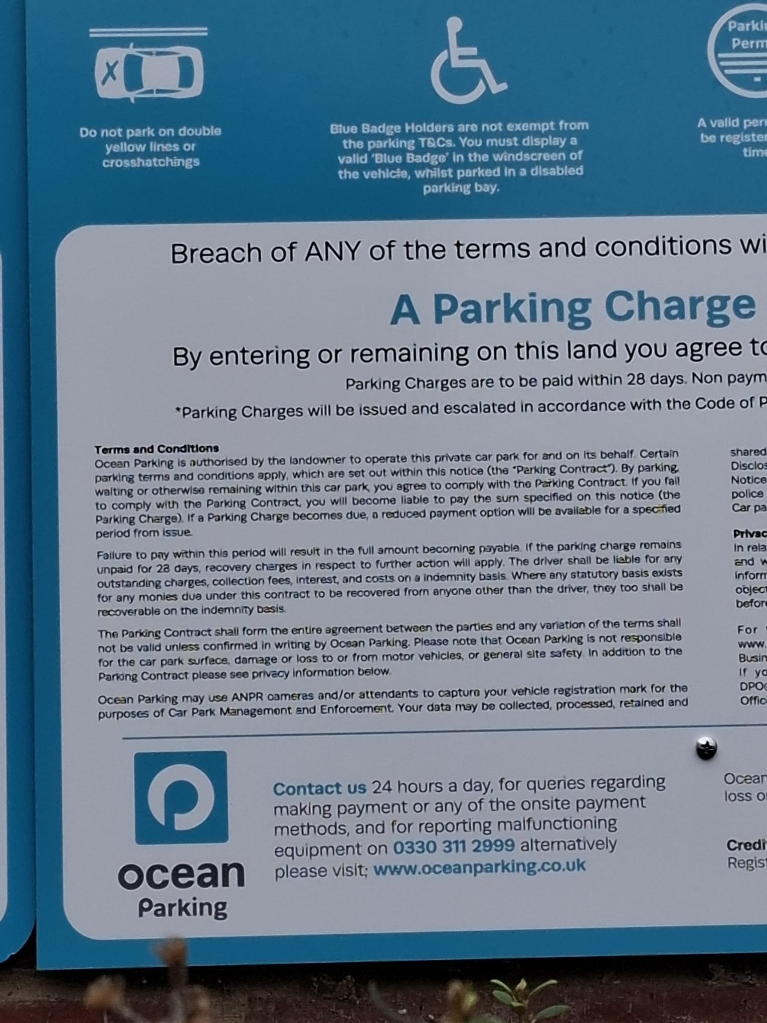 The most recent PCN was issued when the vehicle was parked in bays marked “short stay” for around 30 minutes before being moved elsewhere. There is no signage explaining the meaning of “short stay”, no stated time limit, and no indication that a permit is required for those particular bays. The wording on the signs appears unclear and does not define any terms relating to those bays.There is no independent appeal from IPC firms so just ignore Ocean.