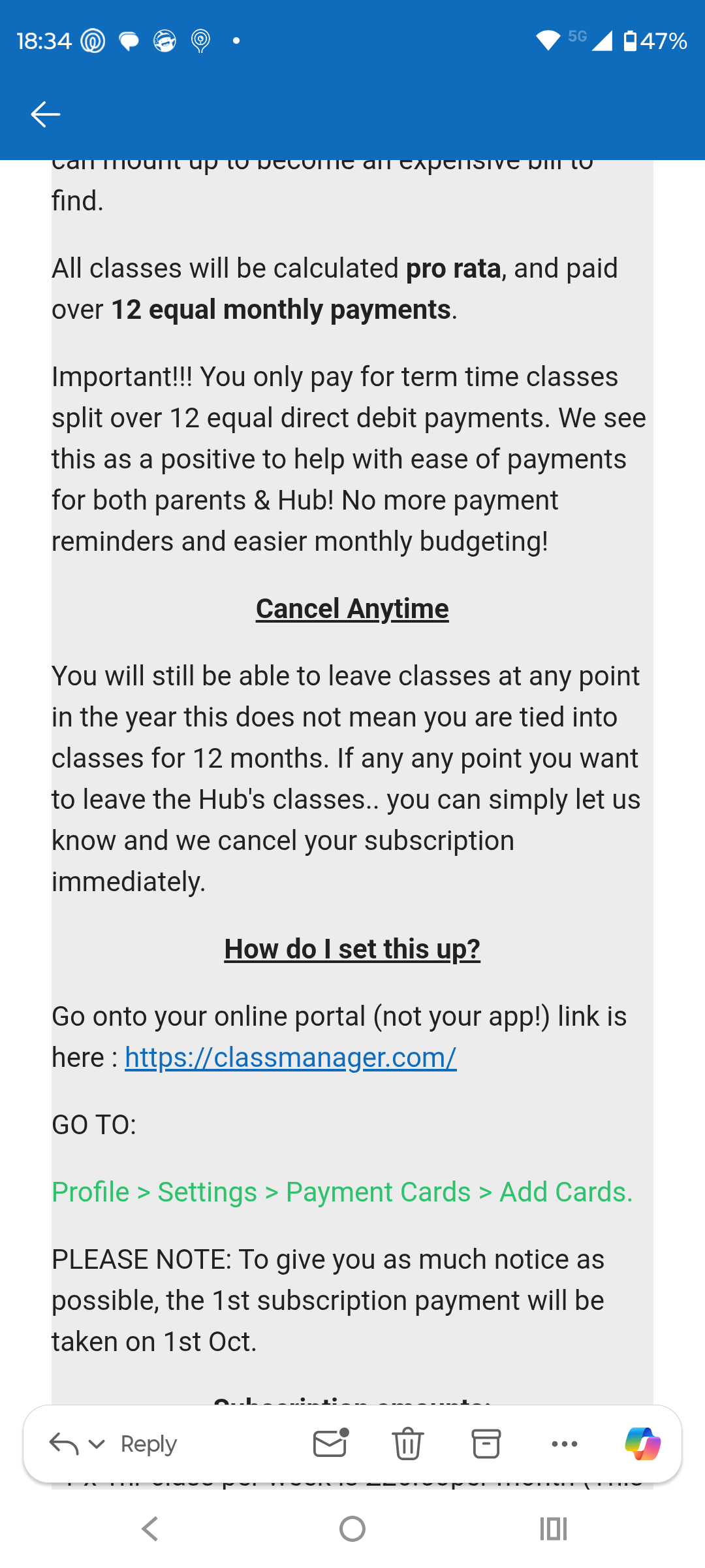 So basically my daughter has been going to this dance school for few years and it was brilliant but they was taken over 12 months ago which was a shame and the the owner started a subscription where they have your card details and take £26.50 a month for the term time lesson (39 lessons a year) so this is priced at £8.15 a lesson. I know most parents was not a happy how the payments work at the time but fast for to September this year we all get an email saying the monthly price is going up to £40 a month (£12.30 a lesson)😳 over 50% rise. They also added some sort of rewards annual subscription of £30 so the 1st of Octobers payment was £70. Obviously a lot of the kids parents had cancelled and left and I noticed by early October we only had about 6 left in my daughter's lesson from about 14. So we also decided to leave while my daughter wasn't that upset because all her friends had left and they have all joined another dance group 5 minutes away at only £5 a lesson.