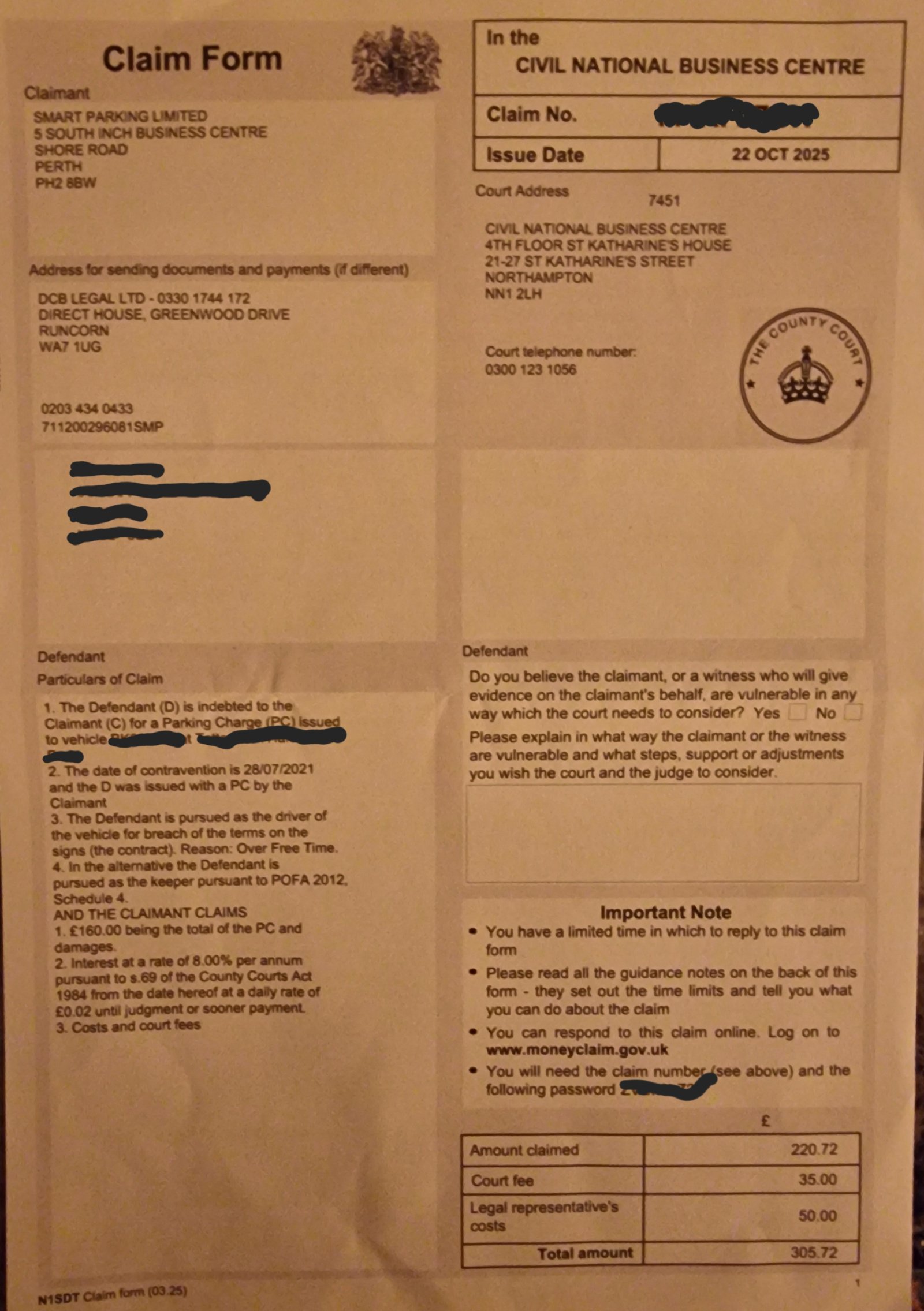 I received a county court letter from dcb legal on behalf of smart parking. I over stayed in a car park as I had a very sick and unwell person with me and I wasnt able to drive away on time after the shopping. I went through popla but no luck. It happened in jul 2021 and since then I. Hanged the home address. They did find me but I ignored their letter. Now I have got the Northampton court letter as attached. I have done the aos online and I have 2 weeks to submit my defence. Please can you share your thoughts?