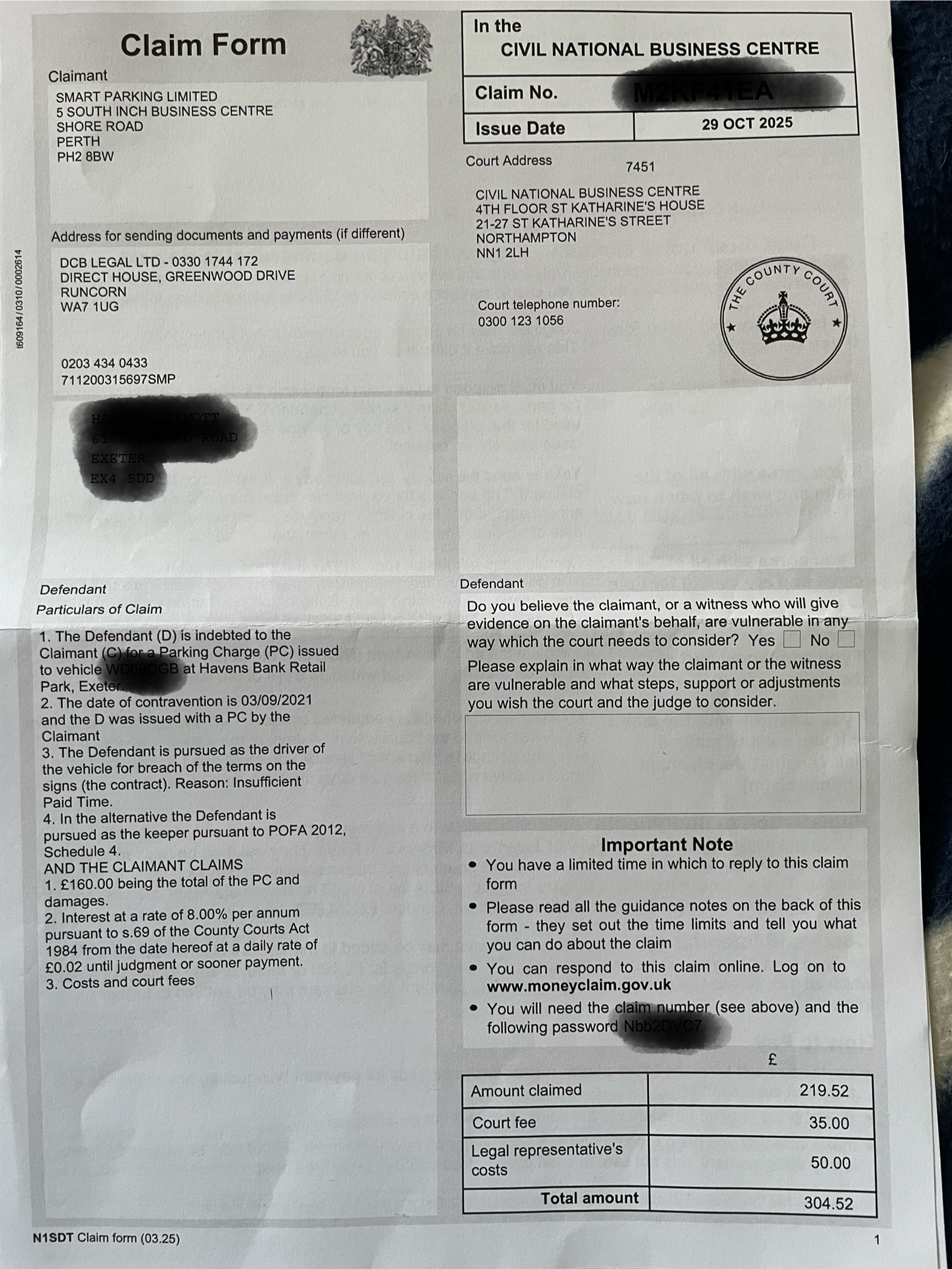 DCB legal court claim questions