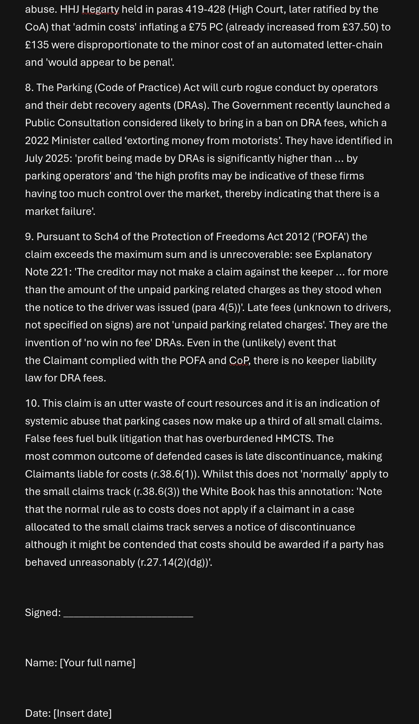 County Court judges know what the Supreme court said and therefore they know that the fake add-on of £70 is just trying to mislead them.