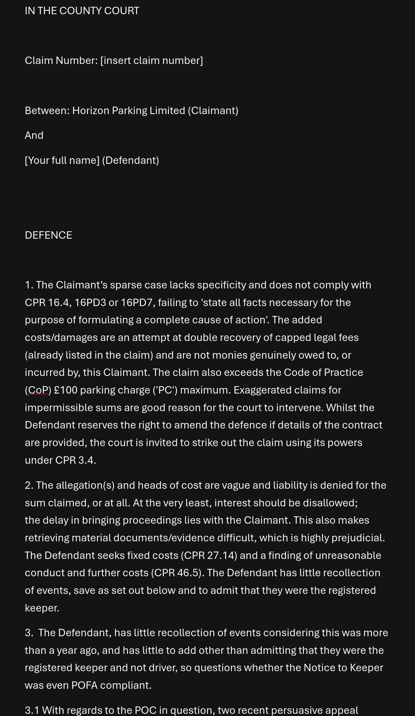 Thank you for suggestions, I modified the template and I will upload it for an opinion as well.There are 10 paragraphs in the defence template, not 7