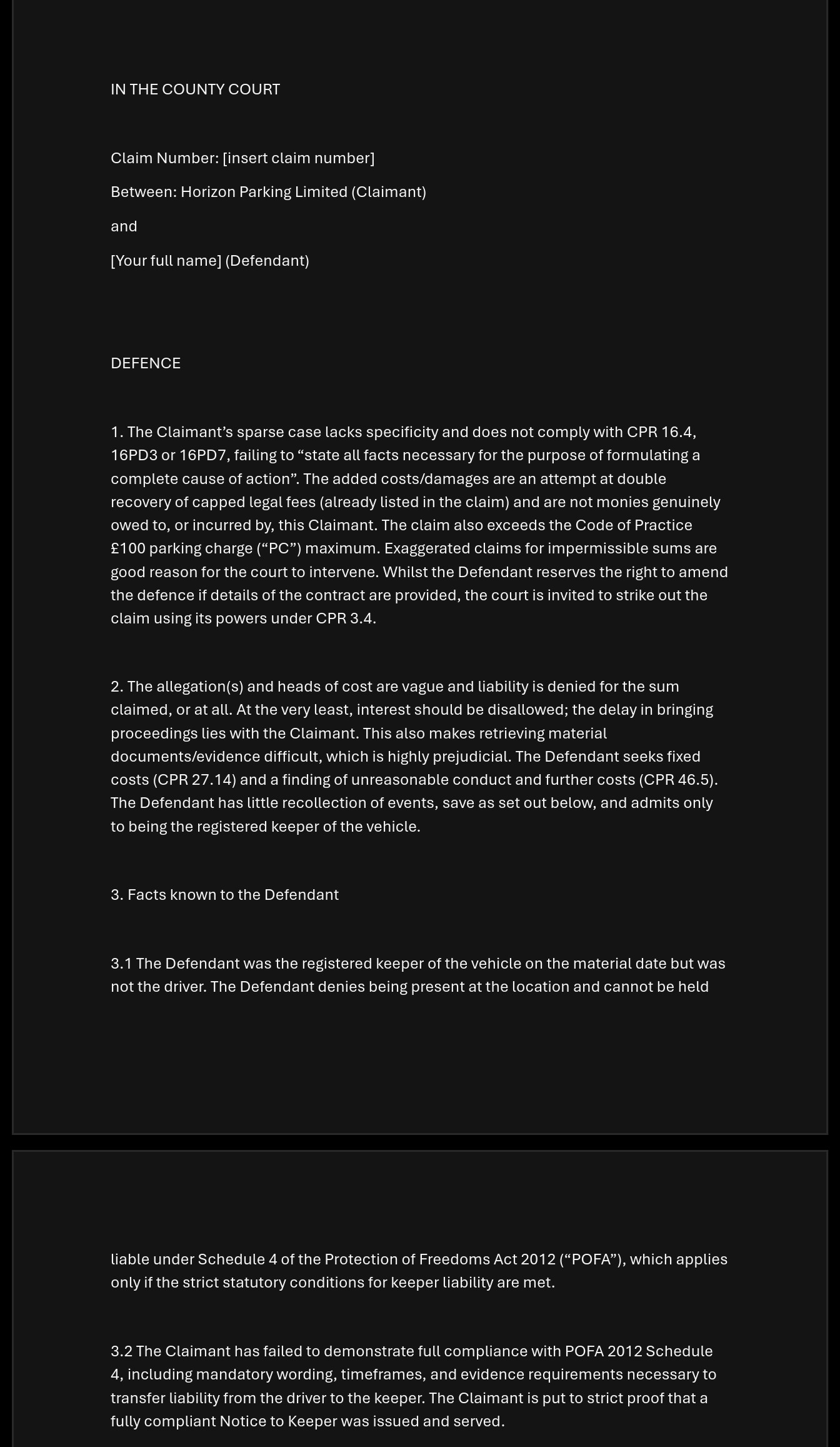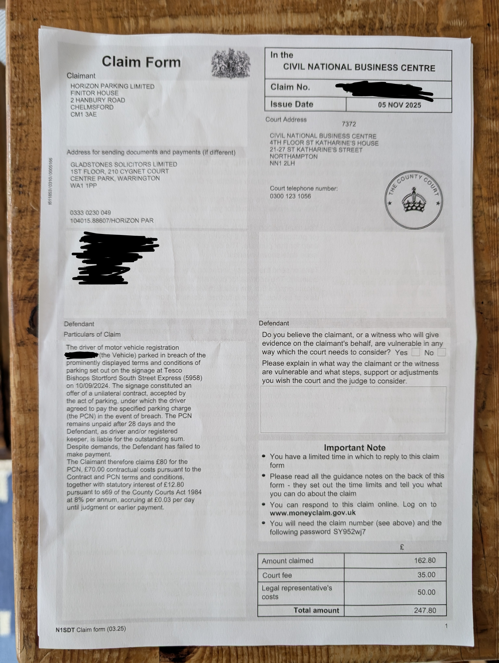 Hi everyone, last year I received a Horizon Parking fine by mail after my car was parked in a Tesco Express car park, as I wasn't the driver on that day I ignored the letters until yesterday when I received a Court Claim Form.