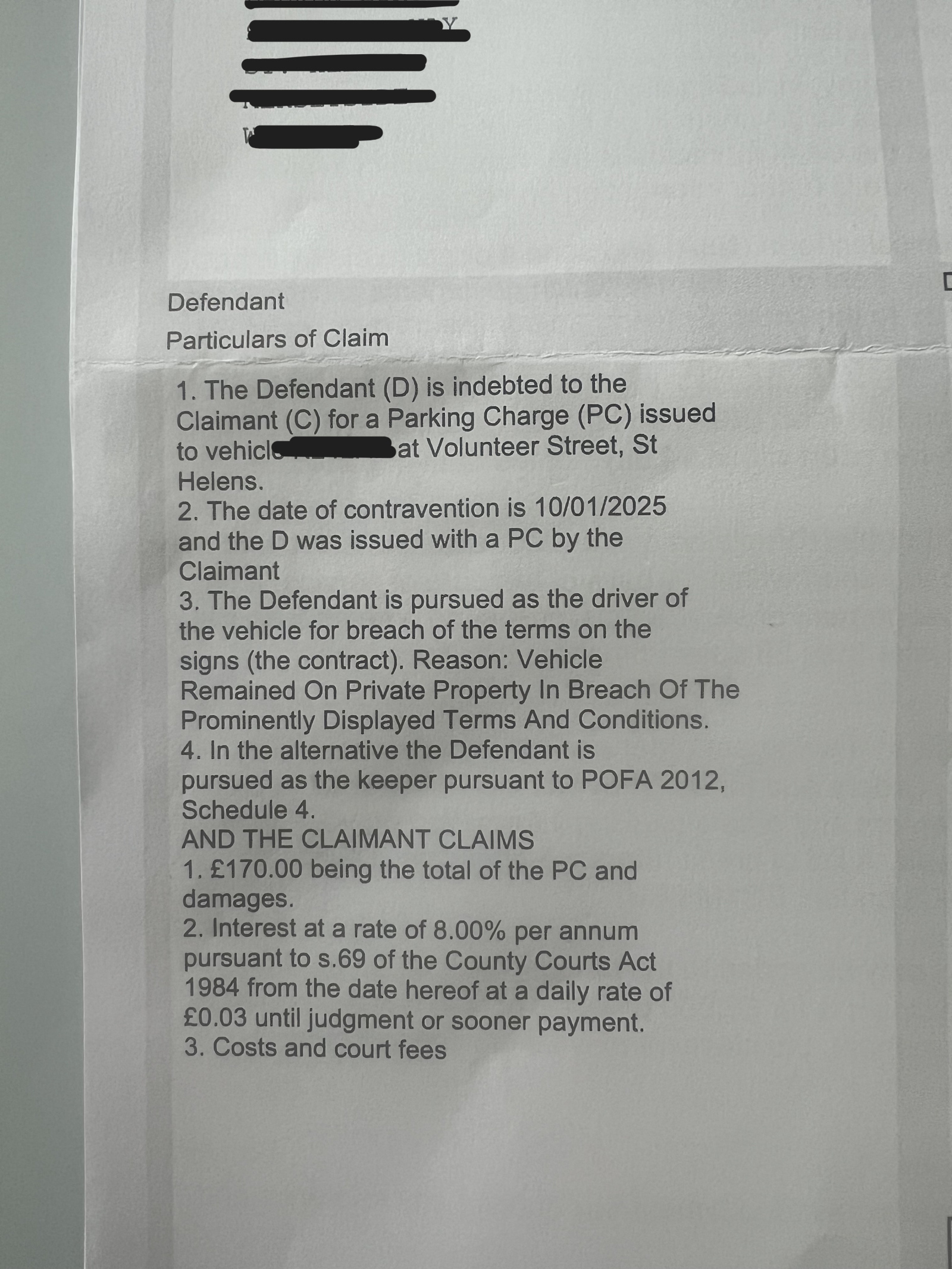 PC Defence for DCB Legal Ltd (on behalf of Parking Eye) - HELP NEEDED