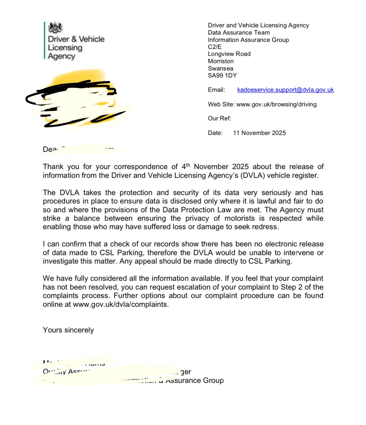 But the data request wouldn't have come from CSL Parking. It would have come from whichever debt collector acts for PESS.PRIVATE 'PCN'? DON'T PAY BUT DON'T IGNORE IT (except N.Ireland).