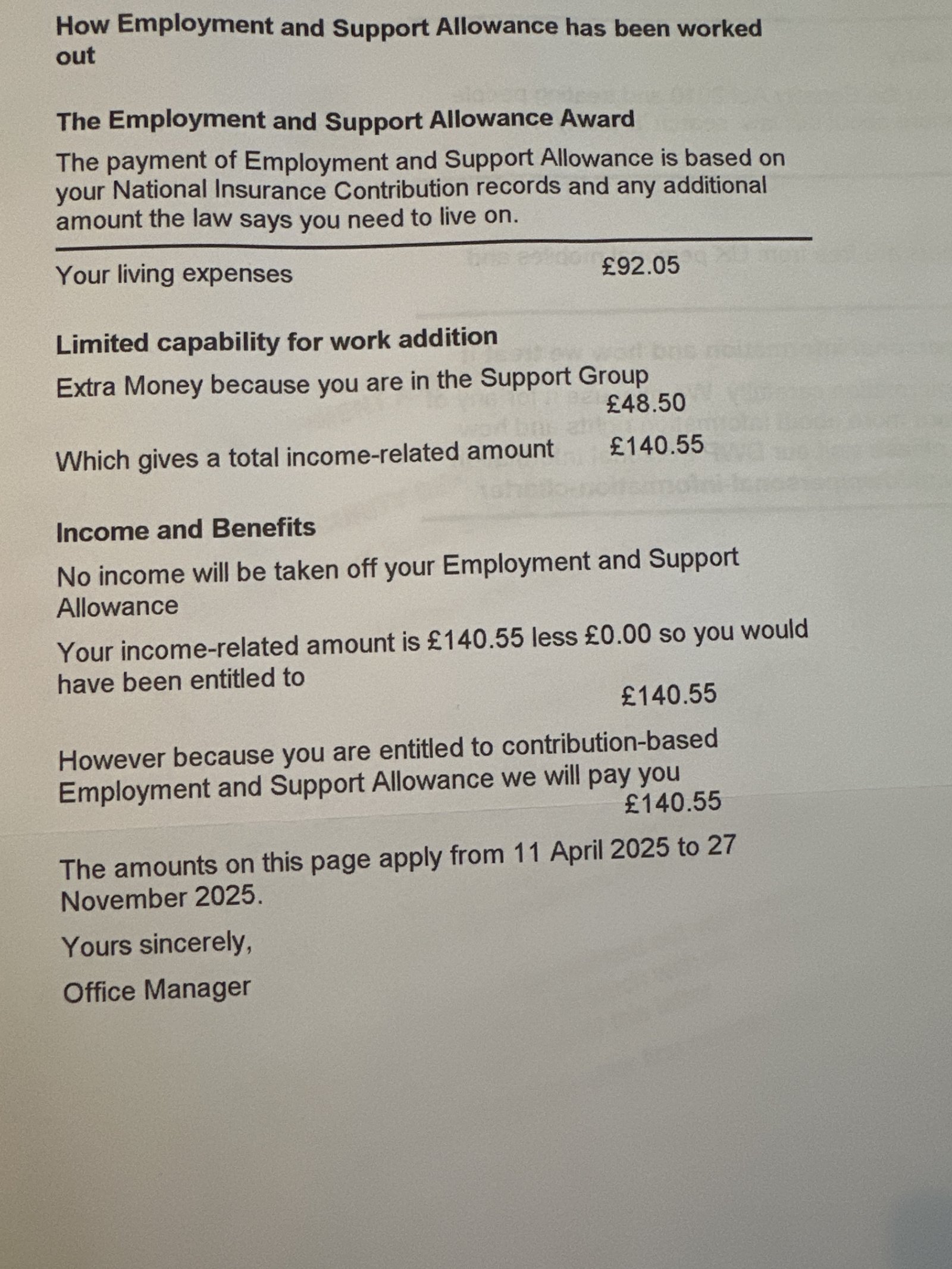 Thank you for clarifying. So confusing but atleast now I know!Robbie64 said:It's definitely contribution based only. If it was income related in any way it would be at least £21.20 more per week (with the enhanced disability premium, sometimes known as the Disability Income Guarantee).0 -